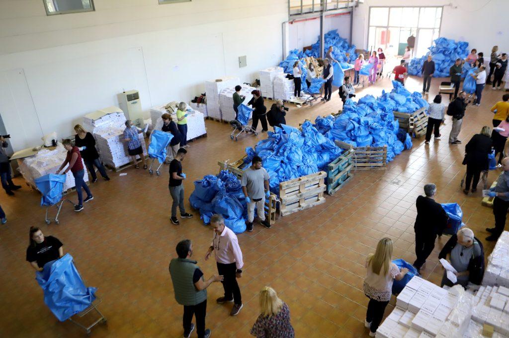 Σήμερα βρισκόμαστε στον κεντρικό χώρο διανομής εδώ στο Γουδί, απ’ όπου τα 5700 εκλογικά τμήματα της Αττικής μας εφοδιάζονται με το κατάλληλο υλικό, το οποίο, ως επί το πλείστον, θα αποτελείται από τέσσερις σάκους, οι οποίοι θα τοποθετηθούν σε κάθε εκλογικό τμήμα, προκειμένου να έχει ό,τι χρειάζεται ο κάθε εκλογικός αντιπρόσωπος.