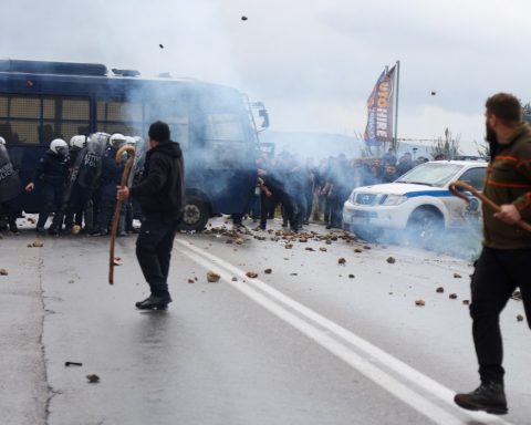 Από τις μολότοφ προκλήθηκε φωτιά σε τρία σταθμευμένα τουριστικά λεωφορεία, με αποτέλεσμα δυο εξ΄ αυτών να υποστούν εκτεταμένες ζημίες και μικρότερες φθορές ένα τρίτο.