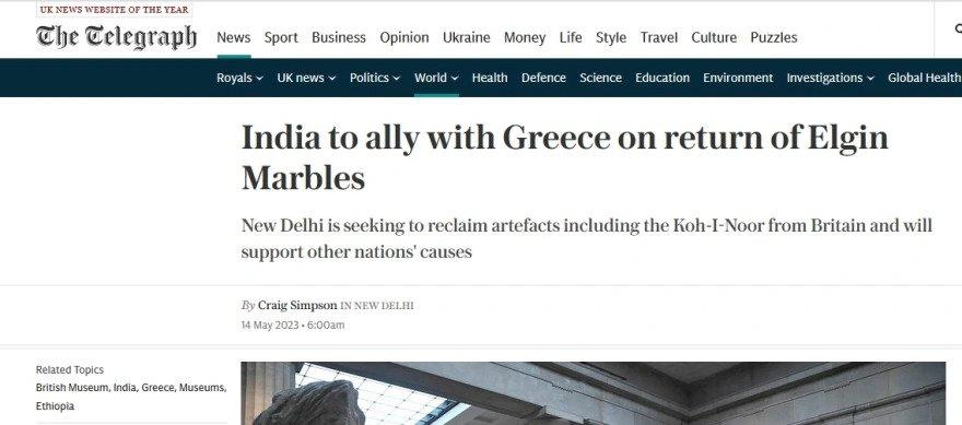 Το βρετανικό μέσο αναφέρεται στο γεγονός ότι φέτος η Ινδία θα βρίσκεται στην προεδρία των G20, ενώ τονίζει τα σχέδια του Νέου Δελχί για μια μακροπρόθεσμη εκστρατεία για την ανάκτηση αντικειμένων, συμπεριλαμβανομένου του διαμαντιού Koh-I-Noor από τη Βρετανία το οποίο σημειωτέον κοσμεί το βασιλικό στέμμα.