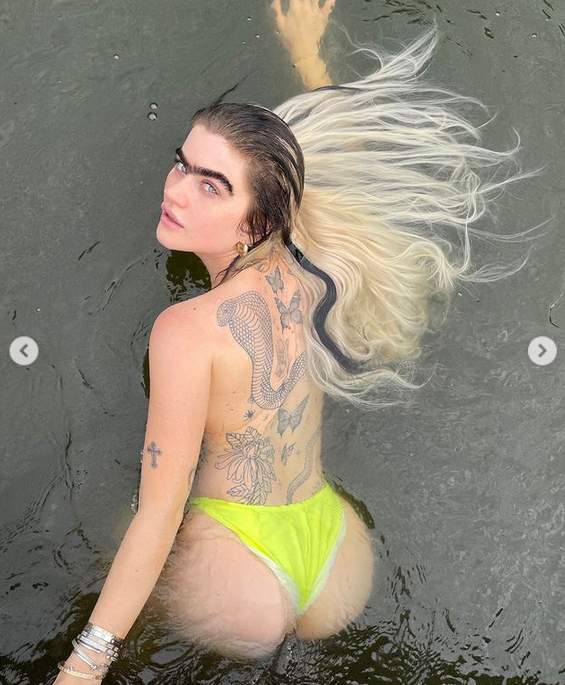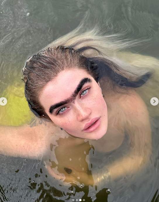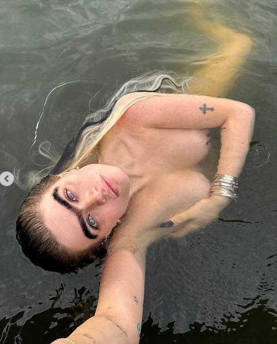 Το μοντέλο απαθανάτισε το μπάνιο σε μια σειρά από topless φωτογραφίες που ανέβασε στη σελίδα της στο Instagram.