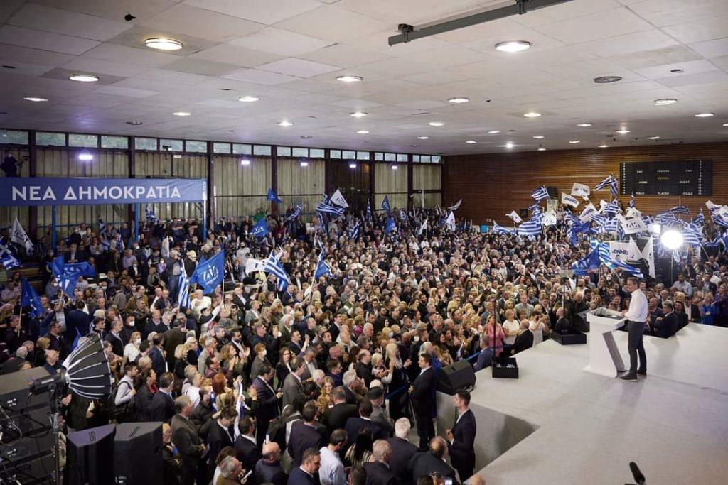 Λαοθάλασσα στην συγκέντρωση του Κυριάκου Μητσοτάκη χθες, Δευτέρα στο Αιγάλεω, με την οποία «άνοιξε» την προεκλογική περίοδο, μετά την επίσημη έναρξή της το Σάββατο.