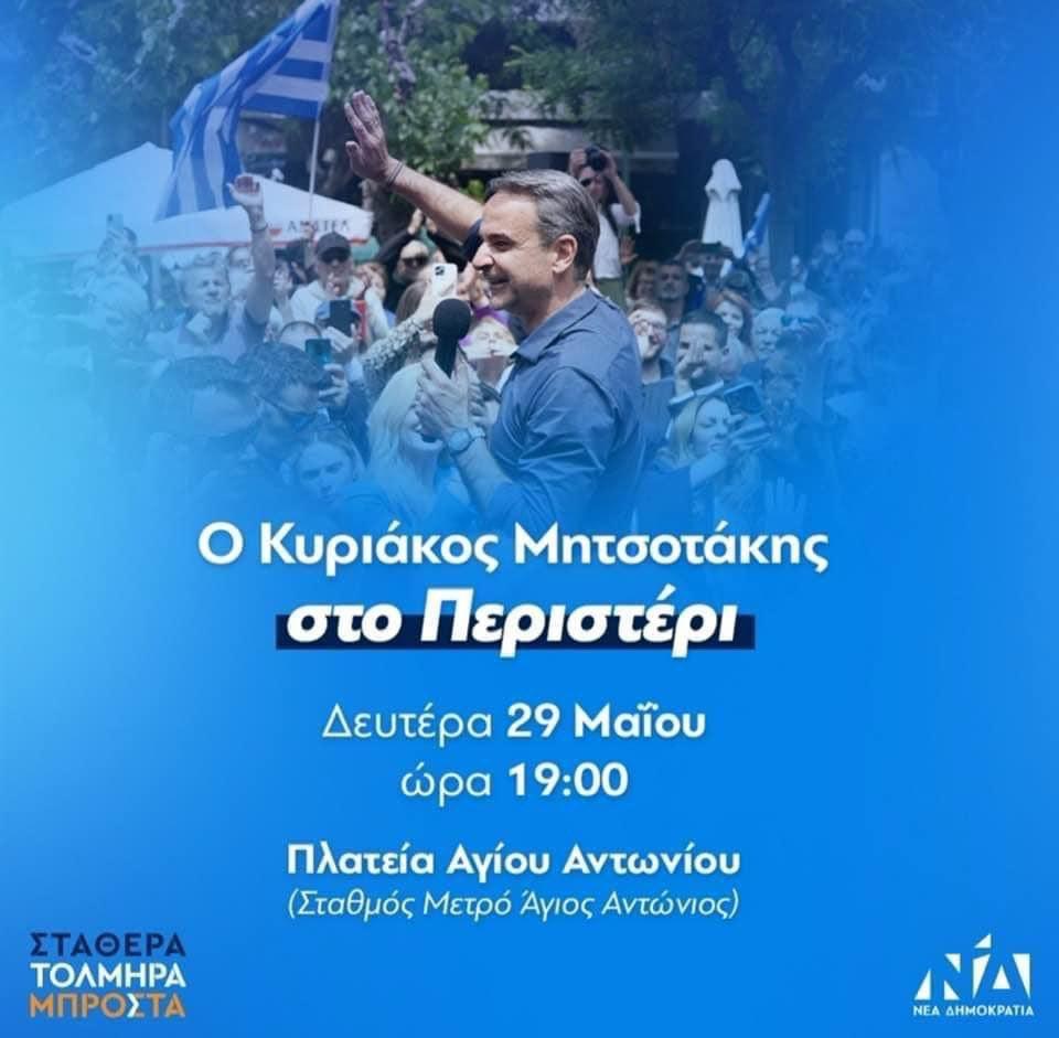 Ο πρόεδρος της Νέας Δημοκρατίας, μετά τον θρίαμβο στις εκλογές της 21ης Μαΐου, αναμένεται να απευθυνθεί στους πολίτες από την Πλατεία Αγίου Αντωνίου, πλησίον του σταθμού του Μετρό, ζητώντας τους ισχυρή εντολή αυτοδυναμίας για να προχωρήσει το μεταρρυθμιστικό έργο της Κυβέρνησης.