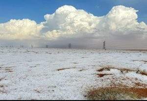 Saudi Arabia’s Al-Jawf region witnessed an extraordinary sight, as snowfall blanketed its desert for the first time on record, following heavy rain and hailstorms.