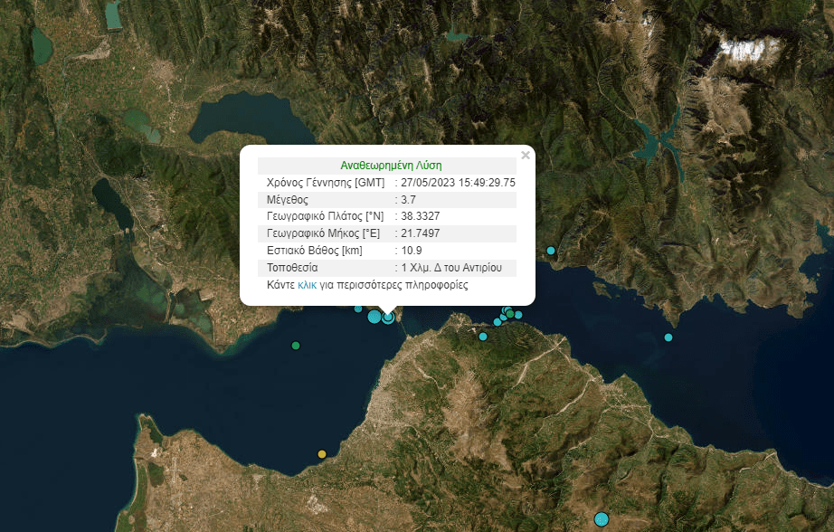 Σεισμός σημειώθηκε περίπου στις 18:50, στο Αντίρριο, ο οποίος έγινε αισθητός στην Πάτρα, στην Ναύπακτο, στο Μεσολόγγι και σε άλλες περιοχές της Αχαΐας και της Αιτωλοακαρνανίας.