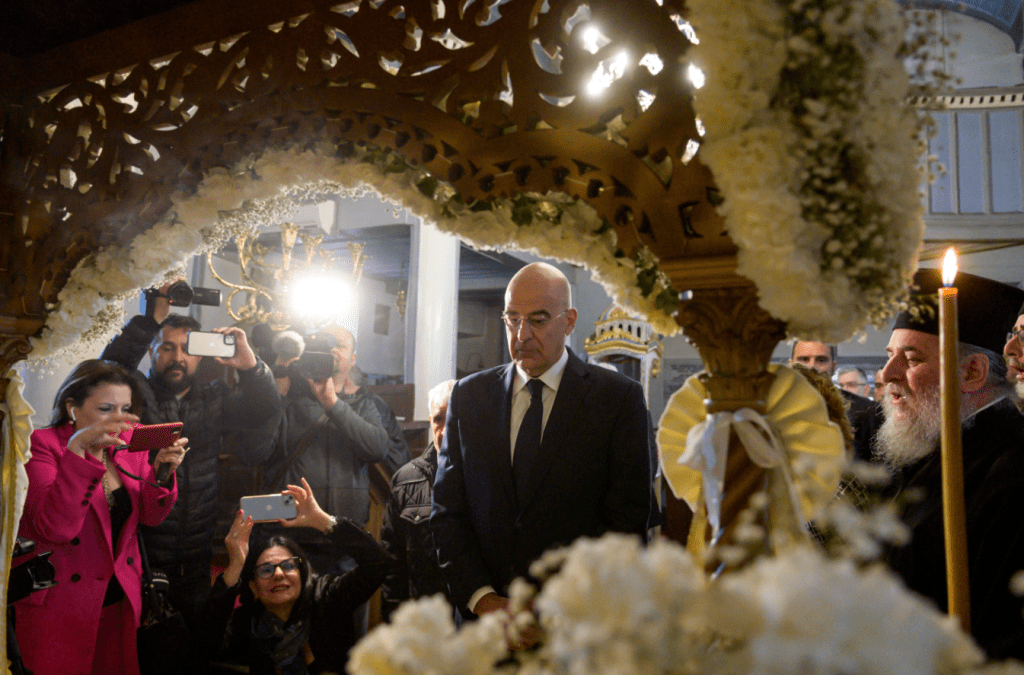 Στην Ίμβρο βρίσκεται σήμερα Μεγάλη Παρασκευή ο υπουργός Εξωτερικών Νίκος Δένδιας, όπου θα παρακολουθήσει την Ακολουθία του Επιτάφιου Θρήνου και την περιφορά του Επιτάφιου στον Ιερό Ναό Ευαγγελιστρίας Αγριδίων, στην οποία θα χοροστατήσει ο Οικουμενικός Πατριάρχης Βαρθολομαίος.