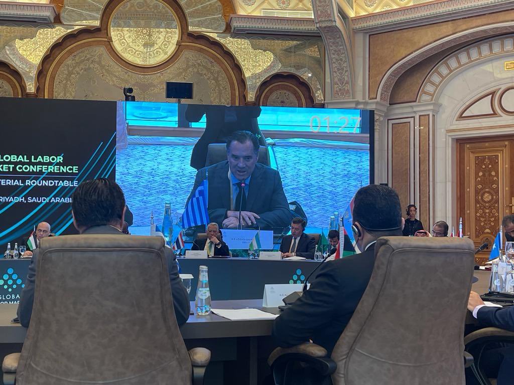 «Πριν λίγο έκανα την εισαγωγική μου τοποθέτηση, ως Υπουργός Εργασίας της Ελλάδος, στην πρωινή συζήτηση στρογγυλής Τραπέζης στο Global Labor Market Conference στο Ριάντ του Βασιλείου της Σαουδικής Αραβίας», αναφέρει ο υπουργός Εργασίας σε σχετική ανάρτηση του στο X (π. Twitter).