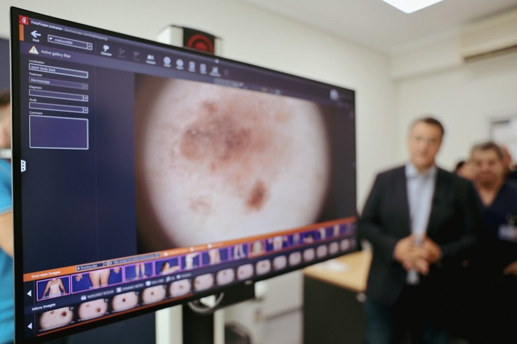 Η Περιφέρεια Κεντρικής Μακεδονίας εξόπλισε την αποκεντρωμένη οργανική μονάδα «Νοσοκομείο Αφροδισίων και Δερματικών Νόσων» του Ιπποκράτειου Νοσοκομείου Θεσσαλονίκης, με 12 υπερσύγχρονα είδη ιατροτεχνολογικού εξοπλισμού, που καλύπτουν τις ανάγκες διάγνωσης, καθώς και θεραπείας διαφορετικών μορφών καρκίνου του δέρματος: Laser Συνεστιακής Μικροσκοπίας, οπτικό τομογράφο, υπέρηχο δέρματος και λεμφαδένων, αυτόματο αναλυτή γονιδιώματος όγκων, σύστημα ηλεκτροχημειοθεραπείας, χειρουργική τράπεζα, διαθερμία, δύο χειρουργικούς προβολείς, δύο αναρροφήσεις, αναισθησιολογικό μηχάνημα, απινιδωτής, σετ χειρουργικών εργαλείων.