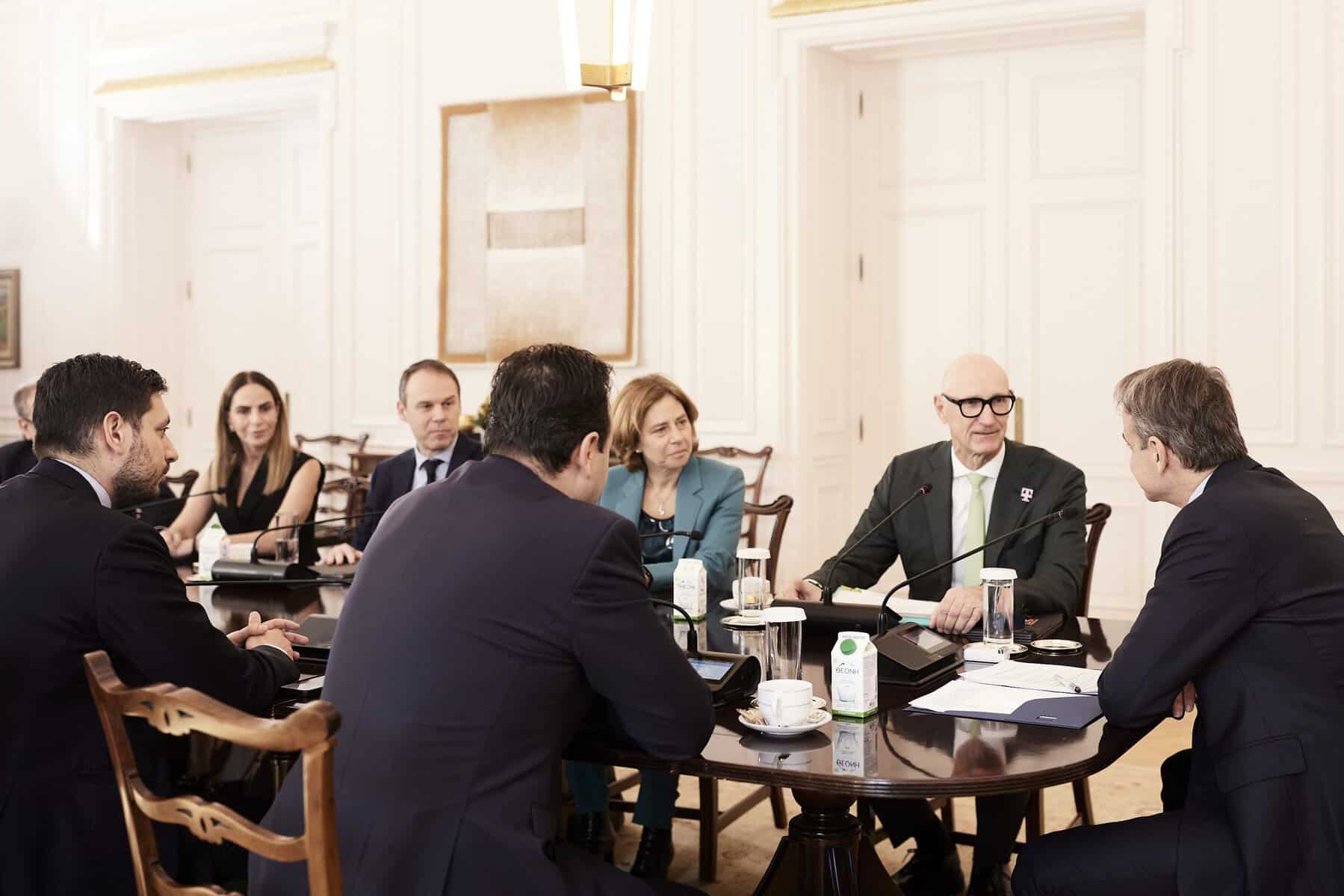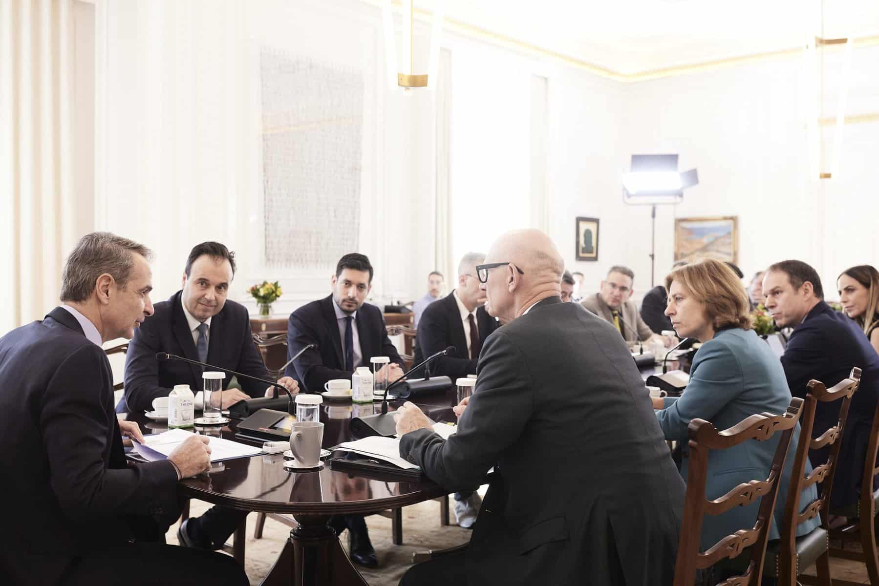 Πηγές από το Μέγαρο Μαξίμου τονίζουν ότι στη σύσκεψη έλαβαν μέρος, από πλευράς κυβέρνησης, ο υπουργός Ψηφιακής Διακυβέρνησης, Δημήτρης Παπαστεργίου, ο υπουργός Επικρατείας, Άκης Σκέρτσος, ο υφυπουργός Ψηφιακής Διακυβέρνησης, Κωνσταντίνος Κυρανάκης και ο υφυπουργός παρά τω πρωθυπουργώ, Γιώργος Μυλωνάκης.