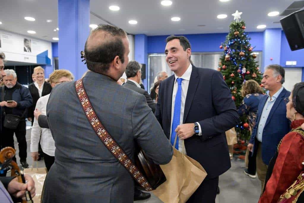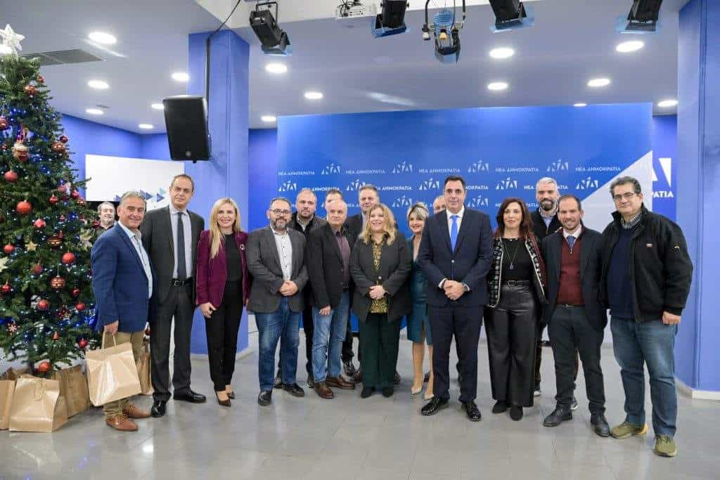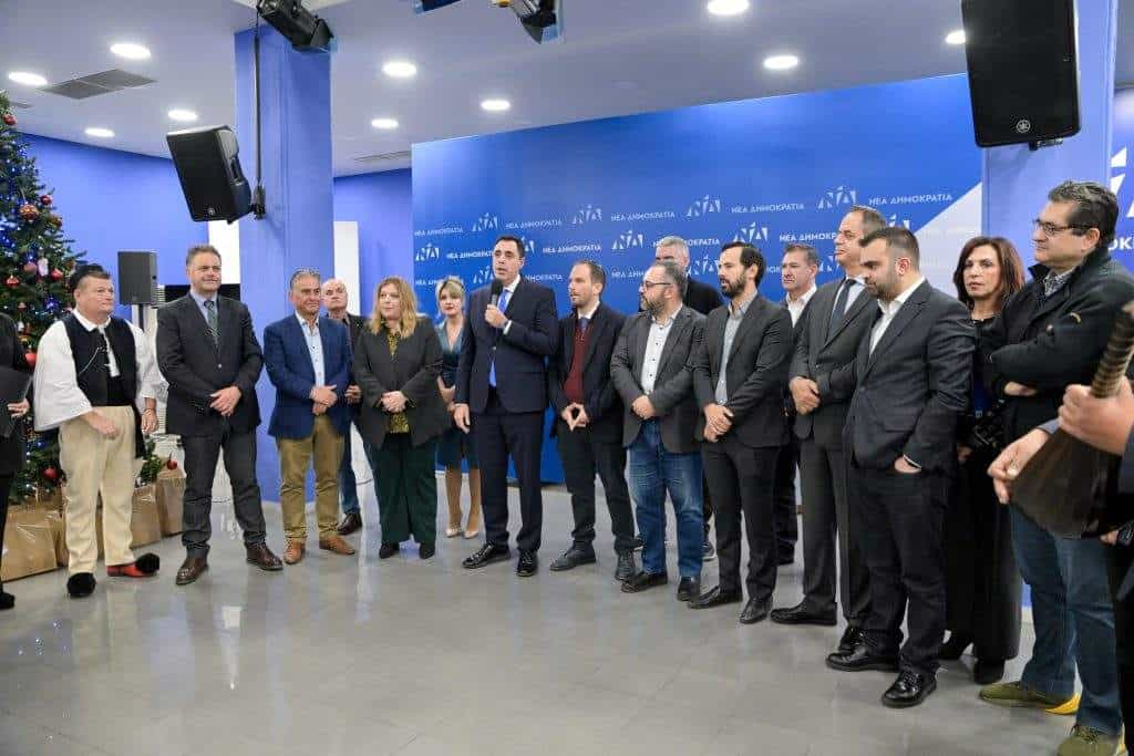 Χριστουγεννιάτικη γιορτή πραγματοποιήθηκε σήμερα στα κεντρικά γραφεία της Νέας Δημοκρατίας. Στελέχη και εργαζόμενοι του κόμματος αντάλλαξαν ευχές και άκουσαν τα Χριστουγεννιάτικα κάλαντα από την Ένωση Ηπειρωτών Περιστερίου «Ο Πύρρος».