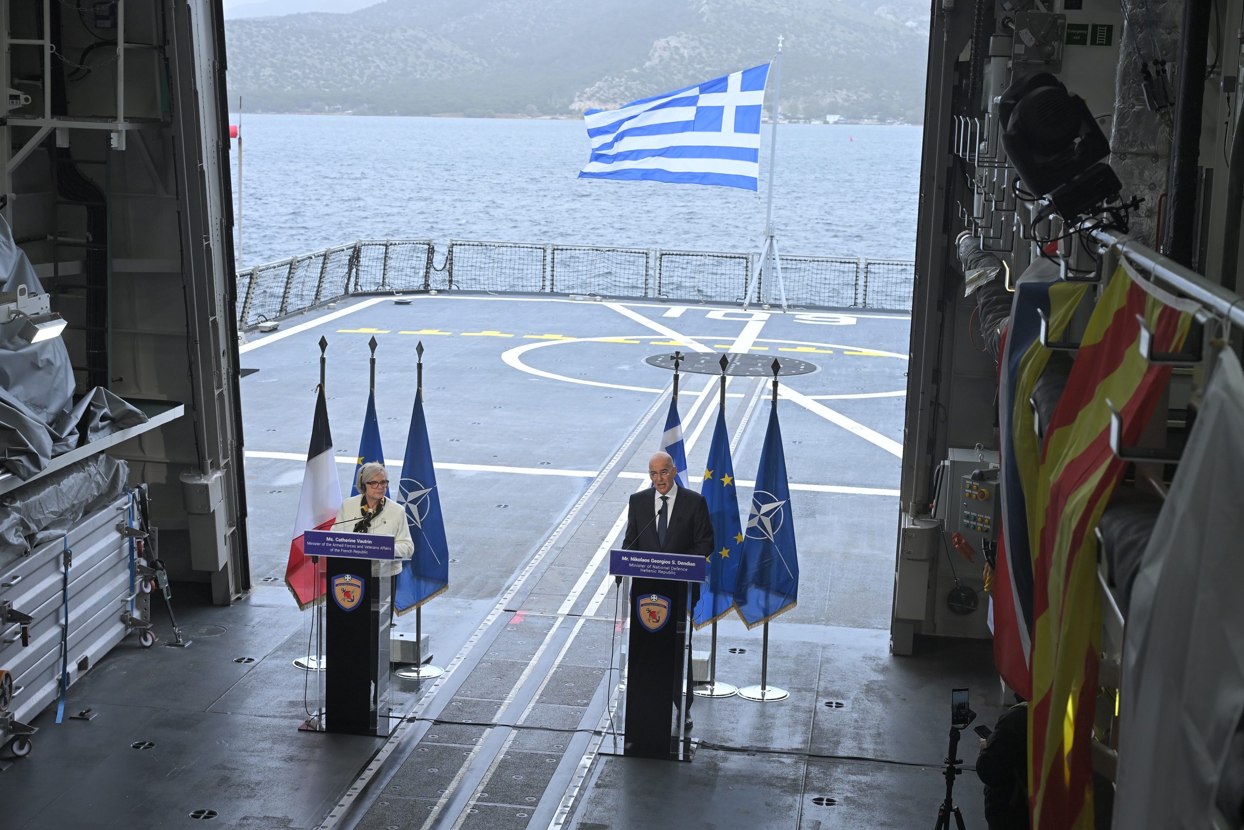 Η συνάντηση πραγματοποιήθηκε επί της φρεγάτας «Κίμων» -της πρώτης ελληνικής Belharra- στο ναύσταθμο Σαλαμίνας.
