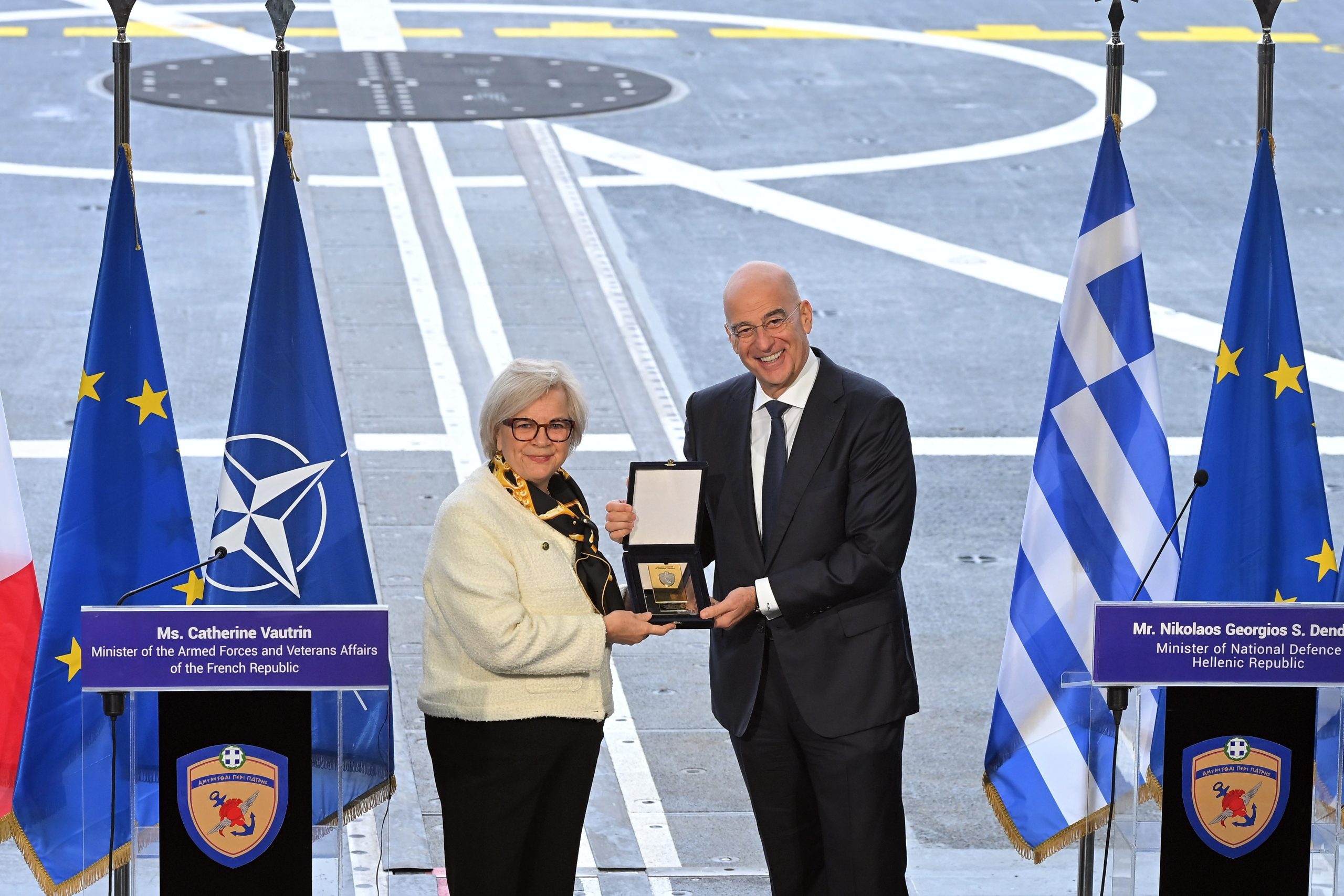 Χαρακτήρισε τη φρεγάτα «Κίμων» το «πιο εμβληματικό επιστέγασμα της στρατηγικής συνεργασίας των δύο χωρών».