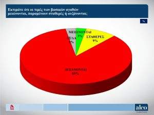 Η Νέα Δημοκρατία προηγείται με 23,7% στη νέα δημοσκόπηση της Alco που παρουσιάστηκε στο κεντρικό δελτίο του Alpha, ακολουθεί το ΠΑΣΟΚ με 13,2% ενώ ο ΣΥΡΙΖΑ καταγράφεται και πάλι σε μονοψήφιο ποσοστό – 9,1% – στην πρόθεση ψήφου επί των εγκύρων.