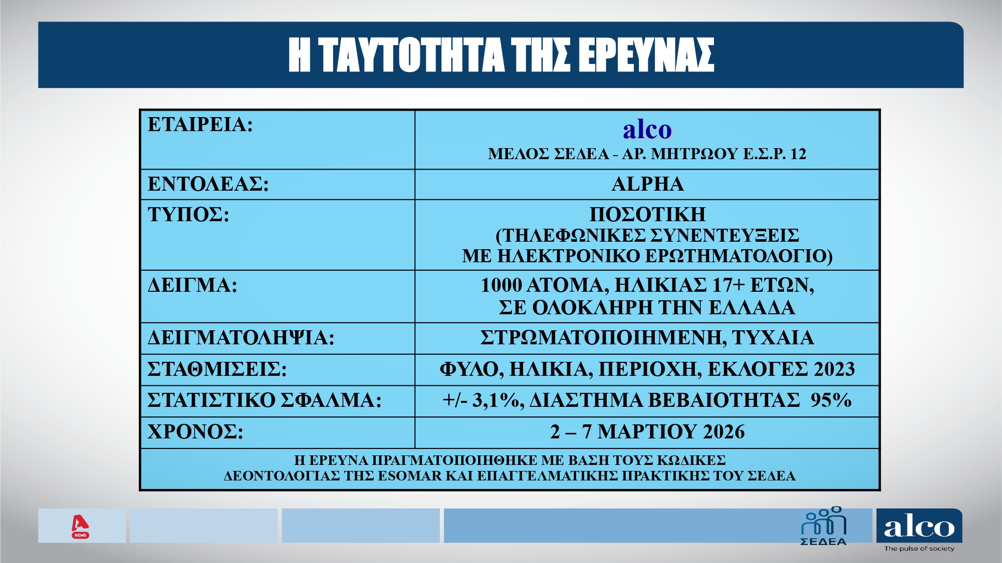 Αναλυτικά η δημοσκόπηση της Alco: