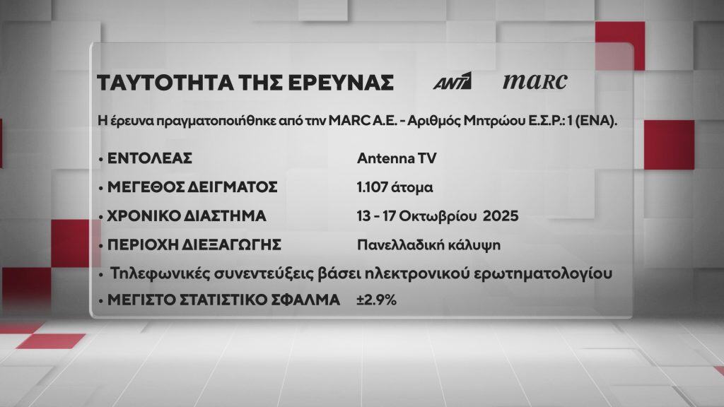 Δείτε αναλυτικά όλα τα στοιχεία της δημοσκόπησης της Marc για τον ΑΝΤ1