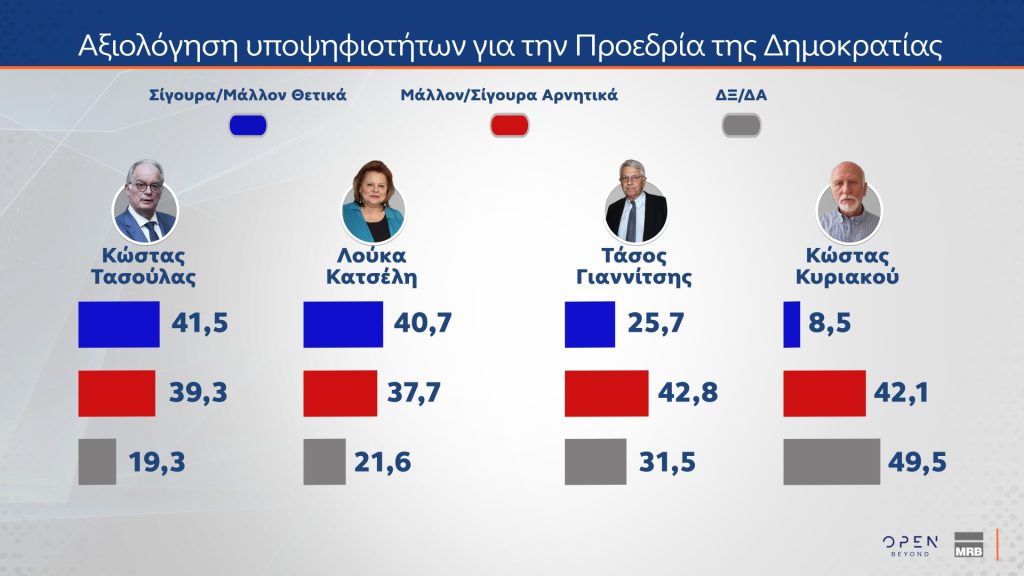 Οι πολίτες αξιολογούν τους υποψήφιους για την Προεδρία της Δημοκρατίας, ως εξής: