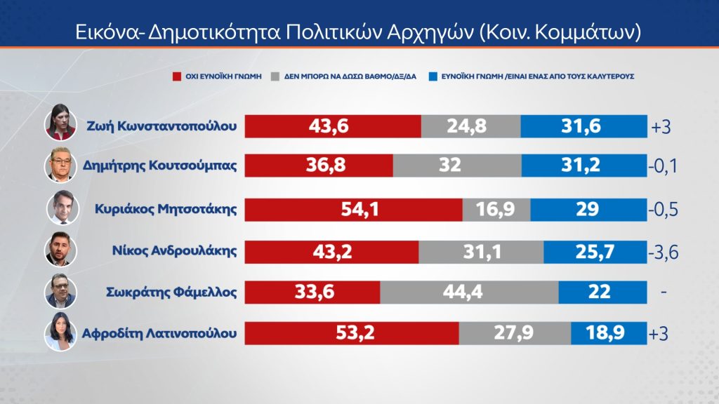 Καταλληλότερος πρωθυπουργός παραμένει ο Κυριάκος Μητσοτάκης με 21,7% και ακολουθεί ο Νίκος Ανδρουλάκης με 7,25%