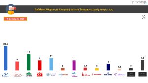 Η PRORATA δίνει και «εκτίμηση ψήφου», δηλαδή κατάταξη με κατανομή των αναποφάσιστων εκλογέων. Σύμφωνα με αυτή, η ΝΔ προηγείται με 25%, ενώ το ΠΑΣΟΚ κατατάσσεται δεύτερο με 16,5 %. Τρίτη είναι η Ελληνική Λύση με ποσοστό 12,5%, ενώ την τέταρτη θέση μοιράζονται με 10%το ΚΚΕ και η Πλεύση Ελευθερίας.