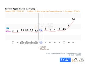 Η ΝΔ προηγείται με 27,5% ενώ μάχη για τη δεύτερη θέση δίνουν ΠΑΣΟΚ και Πλεύση Ελευθερίας, καθώς και τα δυο κόμματα καταγράφουν την ίδια επίδοση 14%, ακολουθεί Η ελληνική Λύση με 9,5%, ΣΥΡΙΖΑ και ΚΚΕ με 8%. Ακολουθούν ΝΙΚΗ και Φωνή Λογικής με 4%, ΜΕΡΑ25 3%, Νέα Αριστερά και Κίνημα Δημοκρατίας με 2,5%