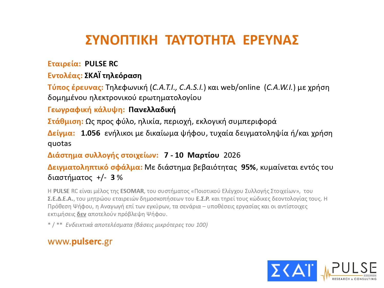 Δείτε αναλυτικά τα αποτελέσματα της Δημοσκόπησης της Pulse για τον ΣΚΑΪ: