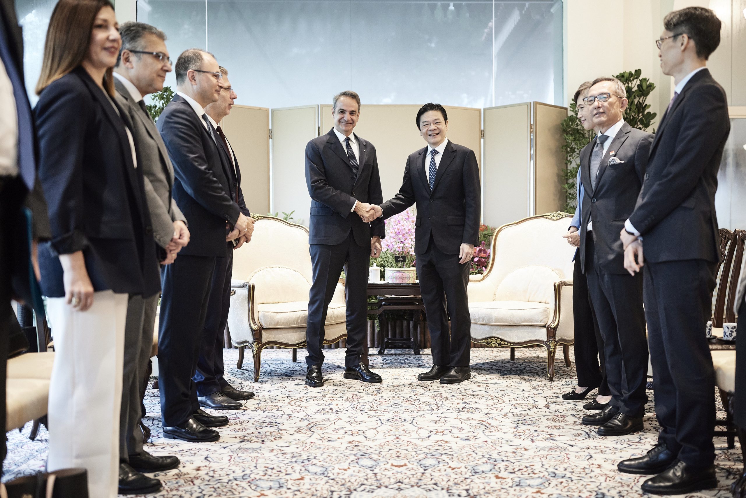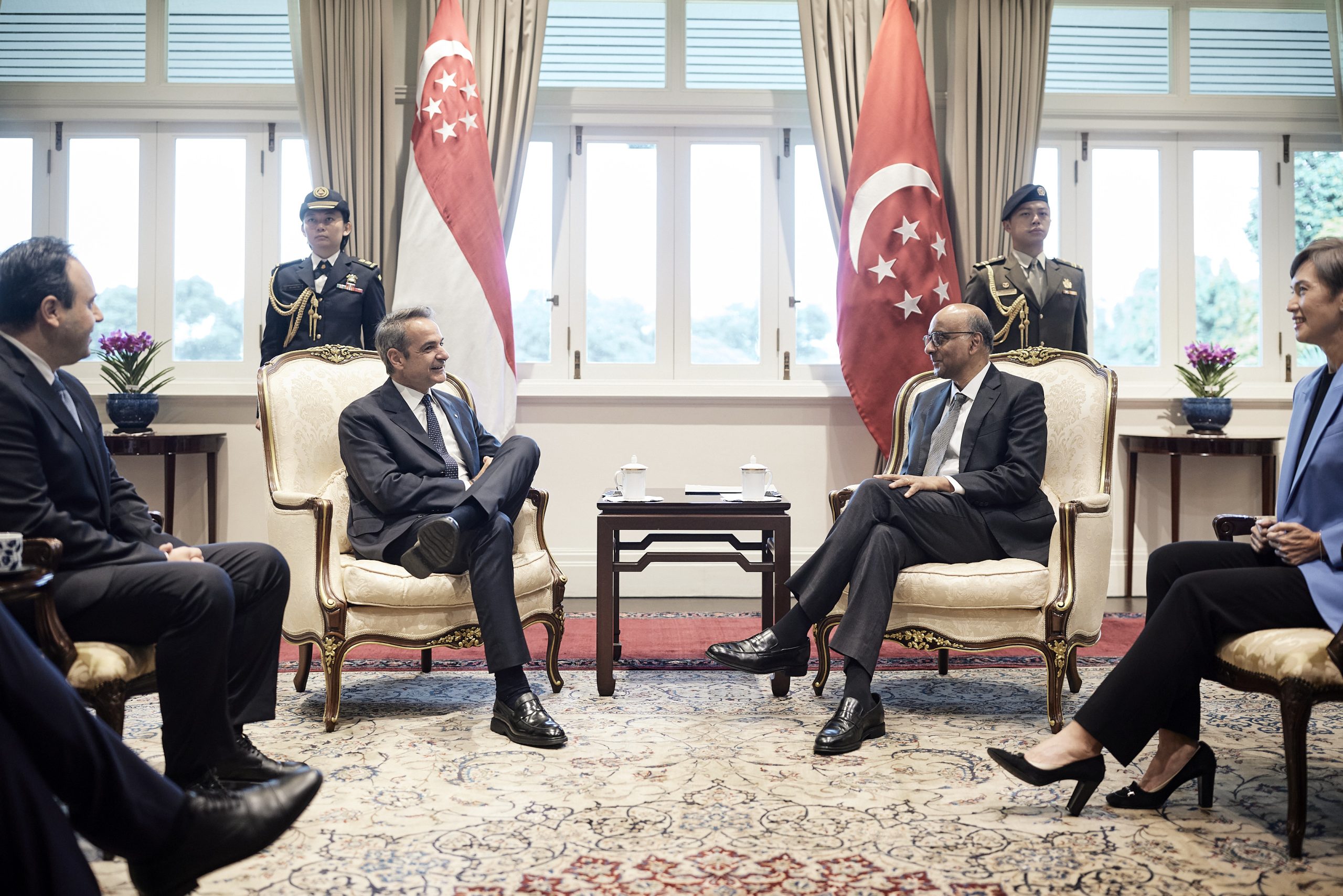 Ο Πρωθυπουργός Κυριάκος Μητσοτάκης συναντήθηκε το πρωί με τον ομόλογό του της Σιγκαπούρης, Lawrence Wong, ενώ έγινε δεκτός από τον Πρόεδρο της Δημοκρατίας Tharman Shanmugaratnam, στο κυβερνητικό συγκρότημα Istana στη Σιγκαπούρη.
