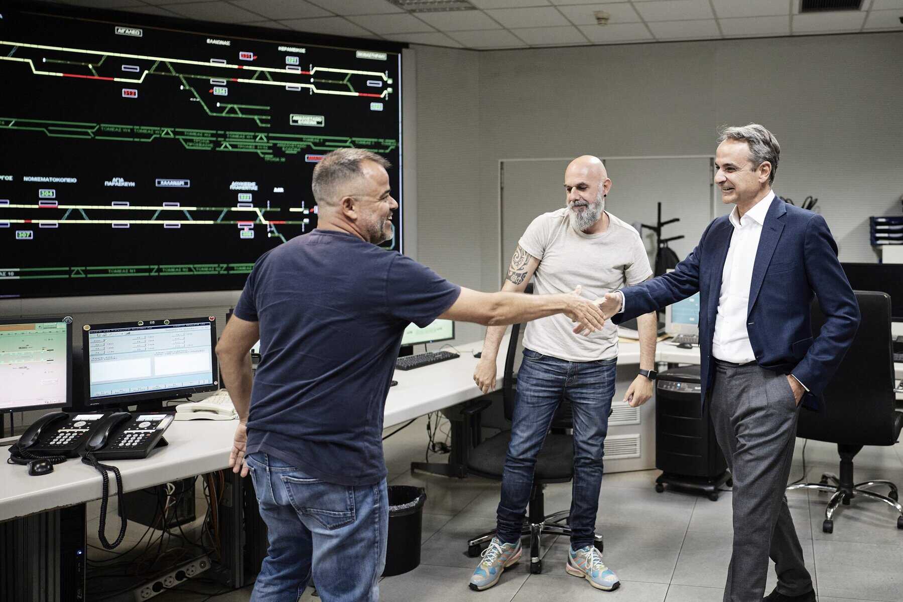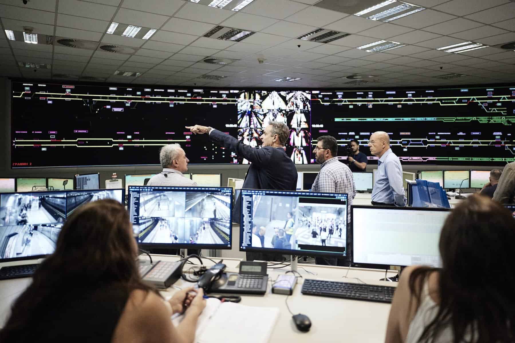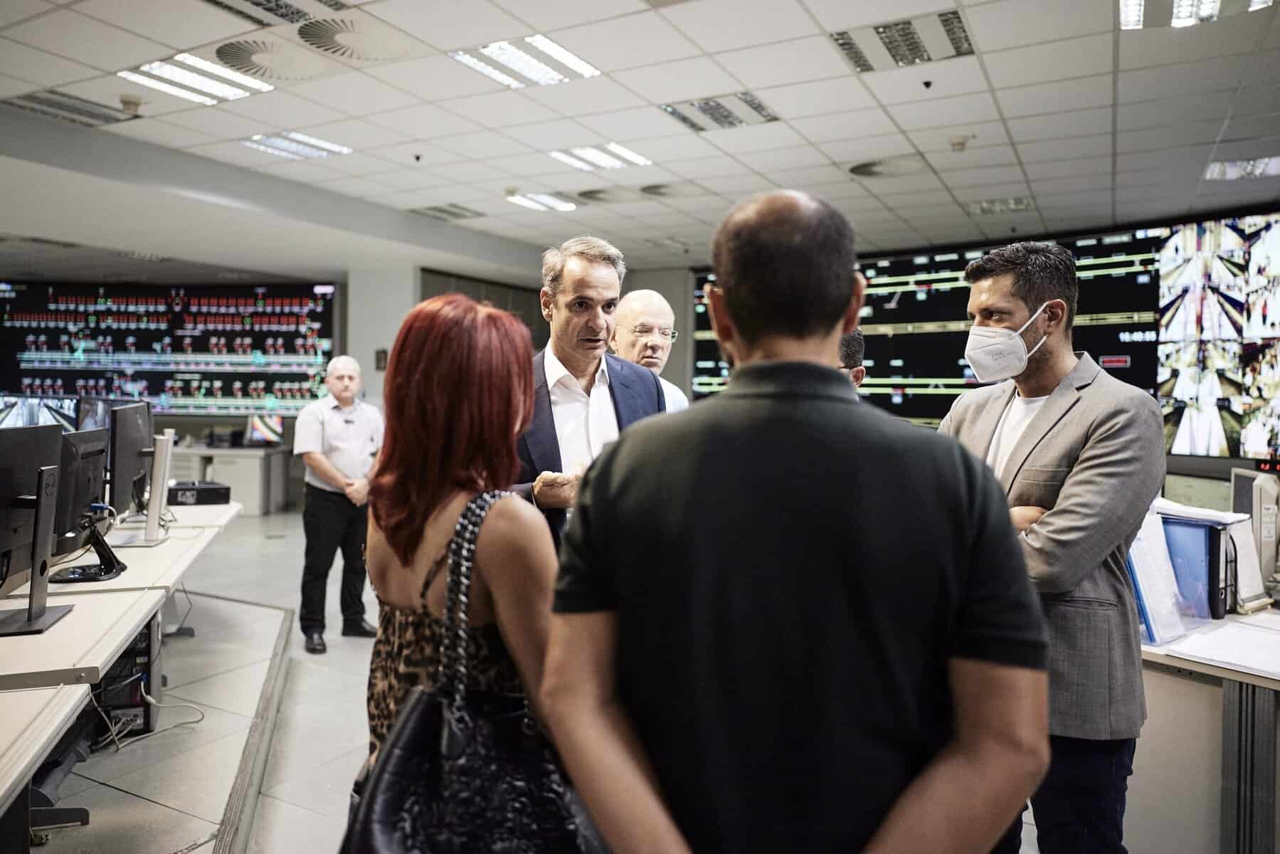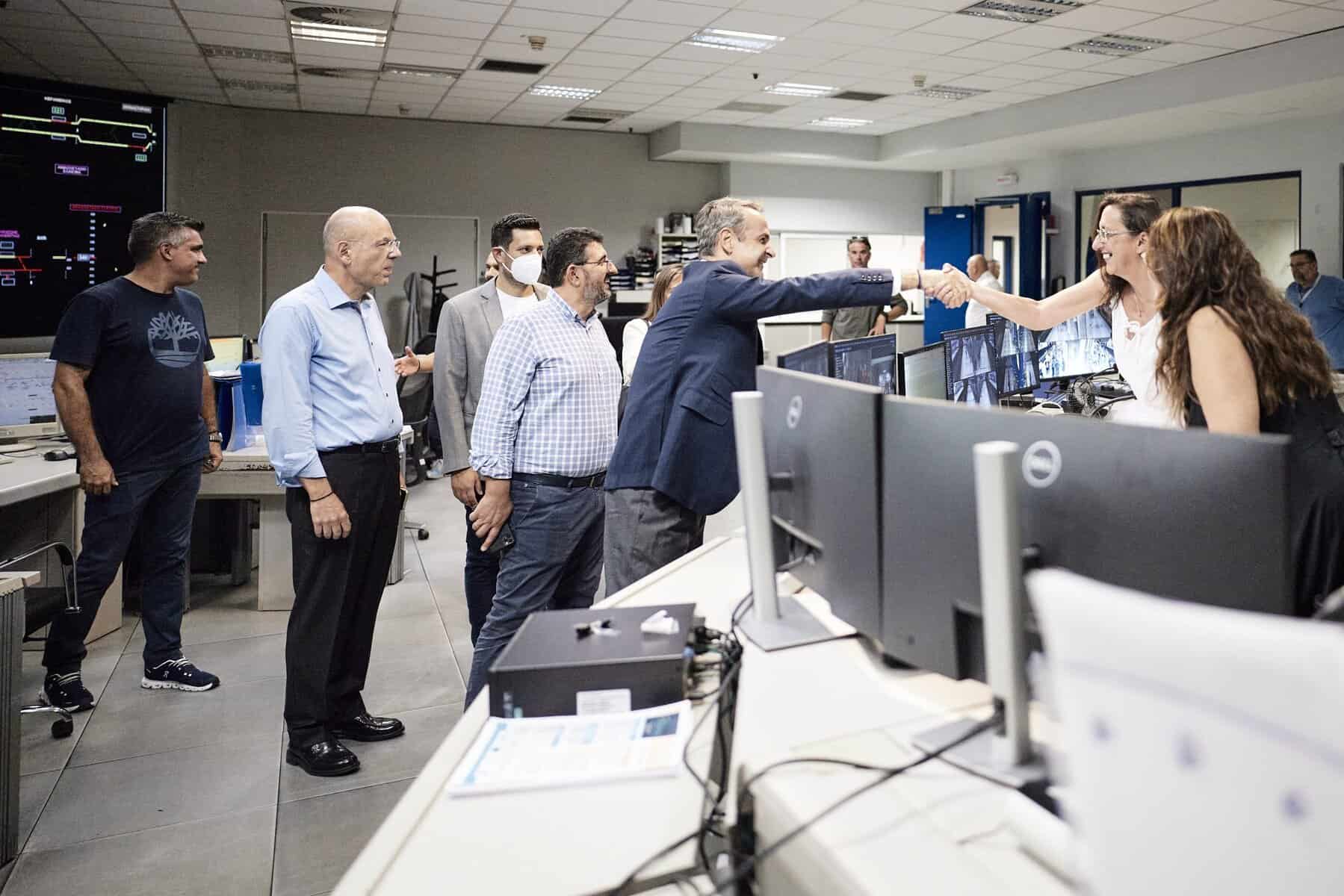Ο Πρωθυπουργός συνομίλησε με εργαζόμενους στο κέντρο ελέγχου και ευχαρίστησε το προσωπικό όλων των μέσων μεταφοράς για τη στήριξή του στην επέκταση του ωραρίου λειτουργίας τα Σάββατα, με στόχο την ασφαλή μετακίνηση επιβατών τις νυχτερινές ώρες.