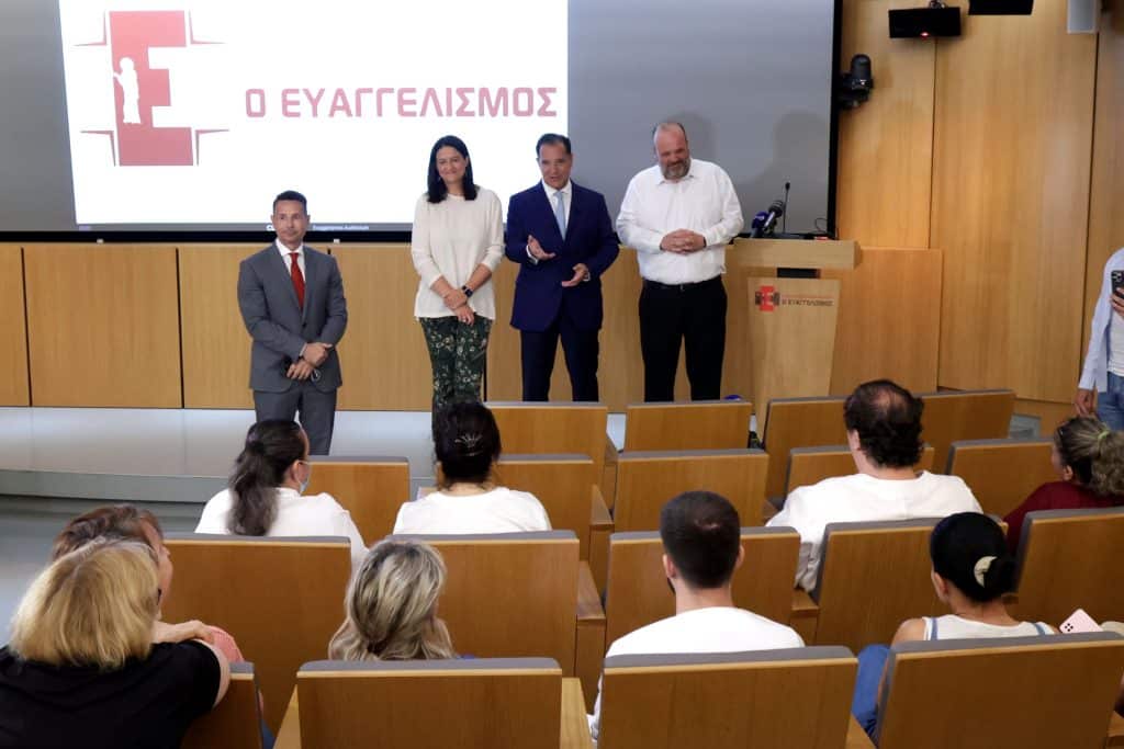 Ο Υπουργός Υγείας Άδωνις Γεωργιάδης και η Υπουργός Εργασίας και Κοινωνικής Ασφάλισης Νίκη Κεραμέως επισκέφθηκαν σήμερα, Πέμπτη 3 Ιουλίου, το Γενικό Νοσοκομείο Αθηνών «Ο Ευαγγελισμός», όπου είχαν την ευκαιρία να συνομιλήσουν με τραυματιοφορείς που προσλήφθηκαν από το «Ειδικό πρόγραμμα απασχόλησης 500 τραυματιοφορέων στον δημόσιο τομέα της υγείας» της ΔΥΠΑ.
