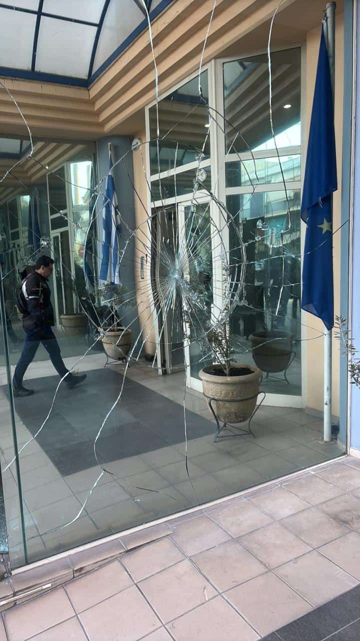 Συγκεκριμένα, τέσσερις νεαροί με καλυμμένα τα πρόσωπά τους και εφοδιασμένοι με κράνη, λοστούς και κοντάρια, προσέγγισαν το κτήριο, κατέστρεψαν τις γλάστρες στον περιβάλλοντα εξωτερικό χώρο και εν συνεχεία έσπασαν τους υαλοπίνακες του ισογείου και προέβησαν σε βανδαλισμό των γραφείων. Το πλήρωμα διερχόμενου περιπολικού της ΕΛΑΣ που βρέθηκε στο σημείο την ώρα της επίθεσης, συνέλαβε επ’ αυτοφώρω τον έναν από τους δράστες, ενώ οι υπόλοιποι τρεις κατάφεραν να διαφύγουν και καταζητούνται.