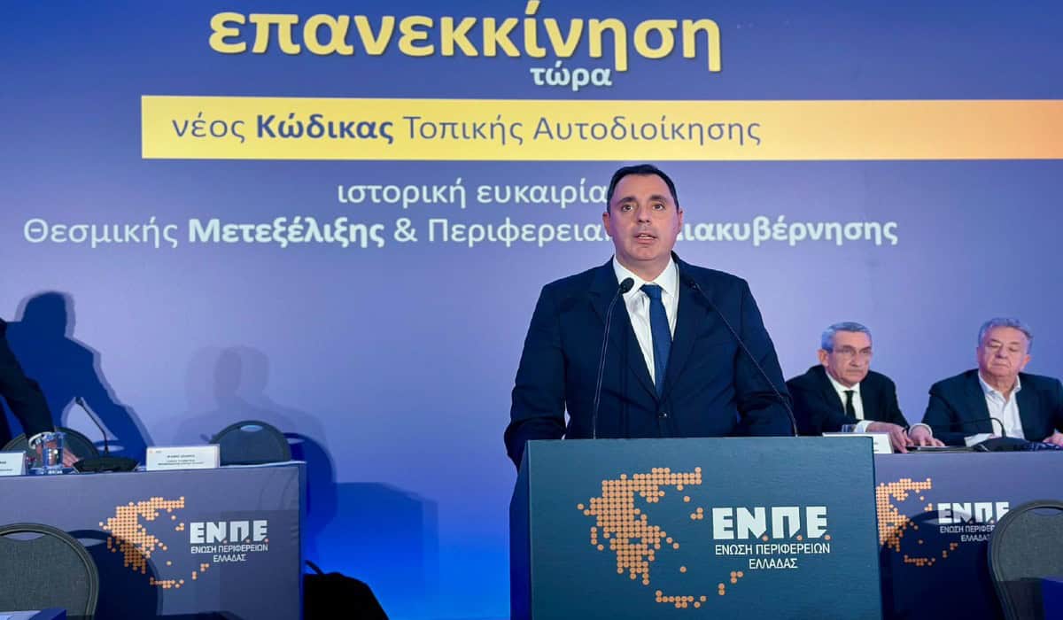 Ο Γενικός Διευθυντής της Νέας Δημοκρατίας, Γιάννης Σμυρλής, απηύθυνε χαιρετισμό στη Γενική Συνέλευση της Ένωσης Περιφερειών Ελλάδας (ΕΝΠΕ), που διεξάγεται στην Αθήνα, με θέμα: «Επανεκκίνηση τώρα, νέος Κώδικας Τοπικής Αυτοδιοίκησης, ιστορική ευκαιρία Μετεξέλιξης & Περιφερειακής Διακυβέρνησης».