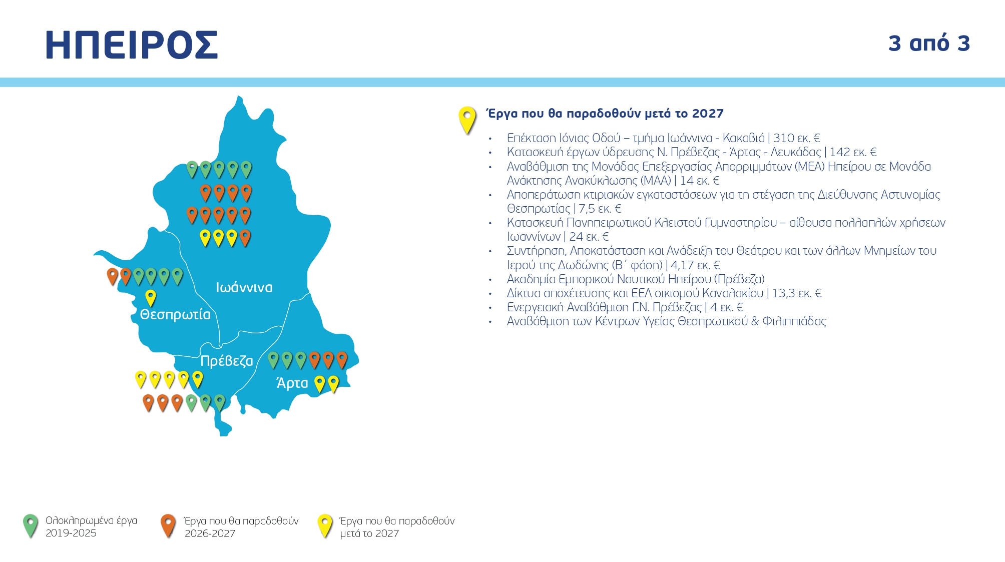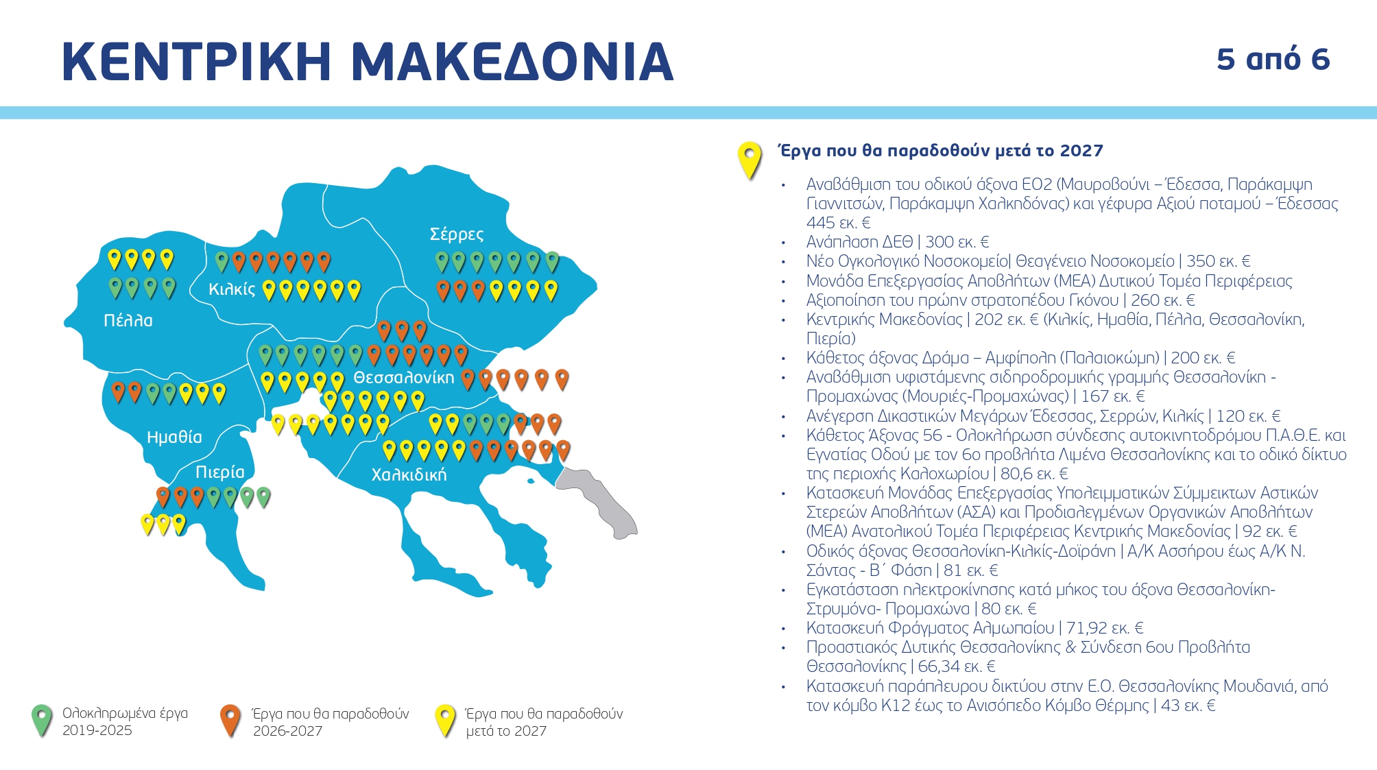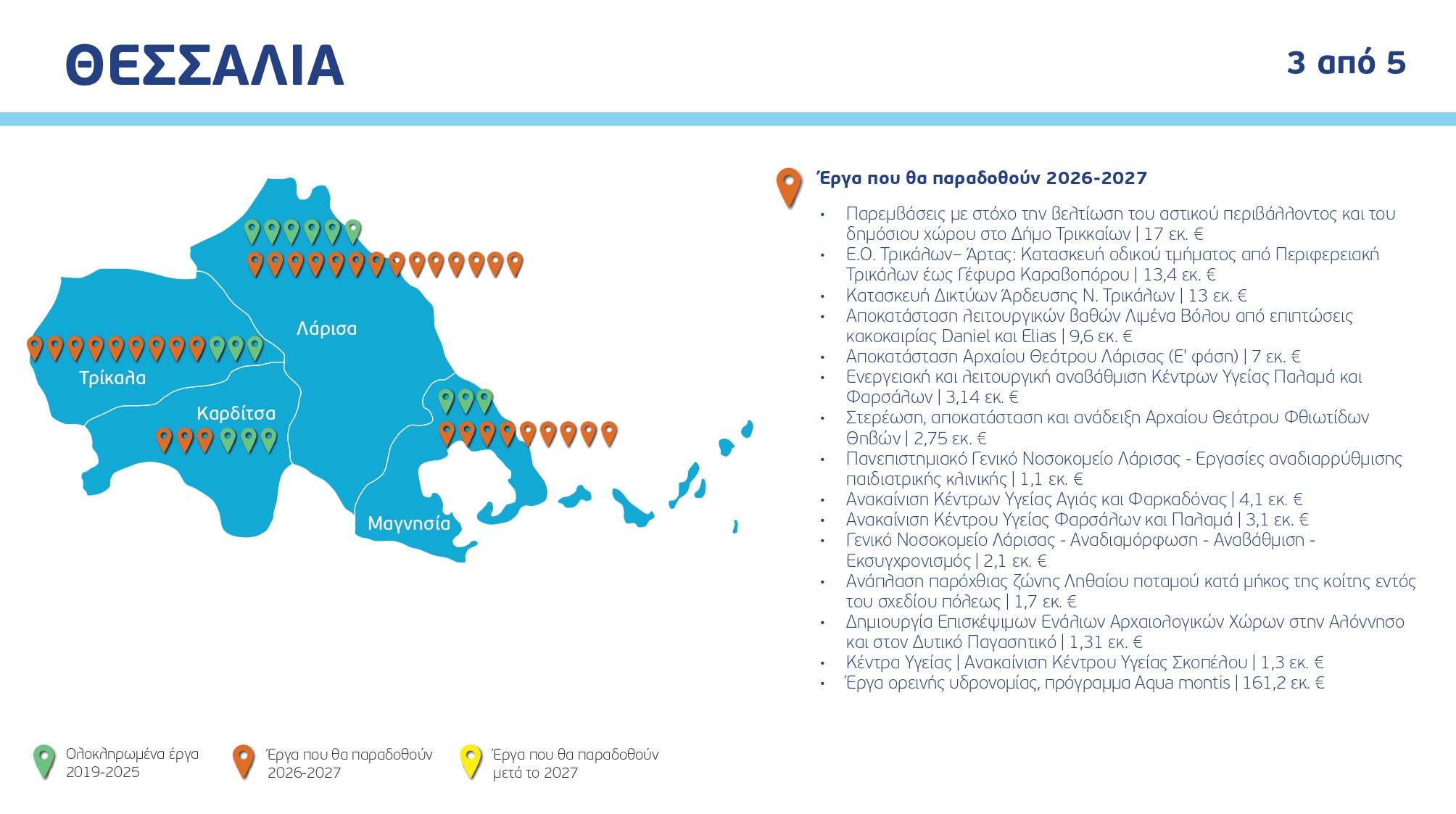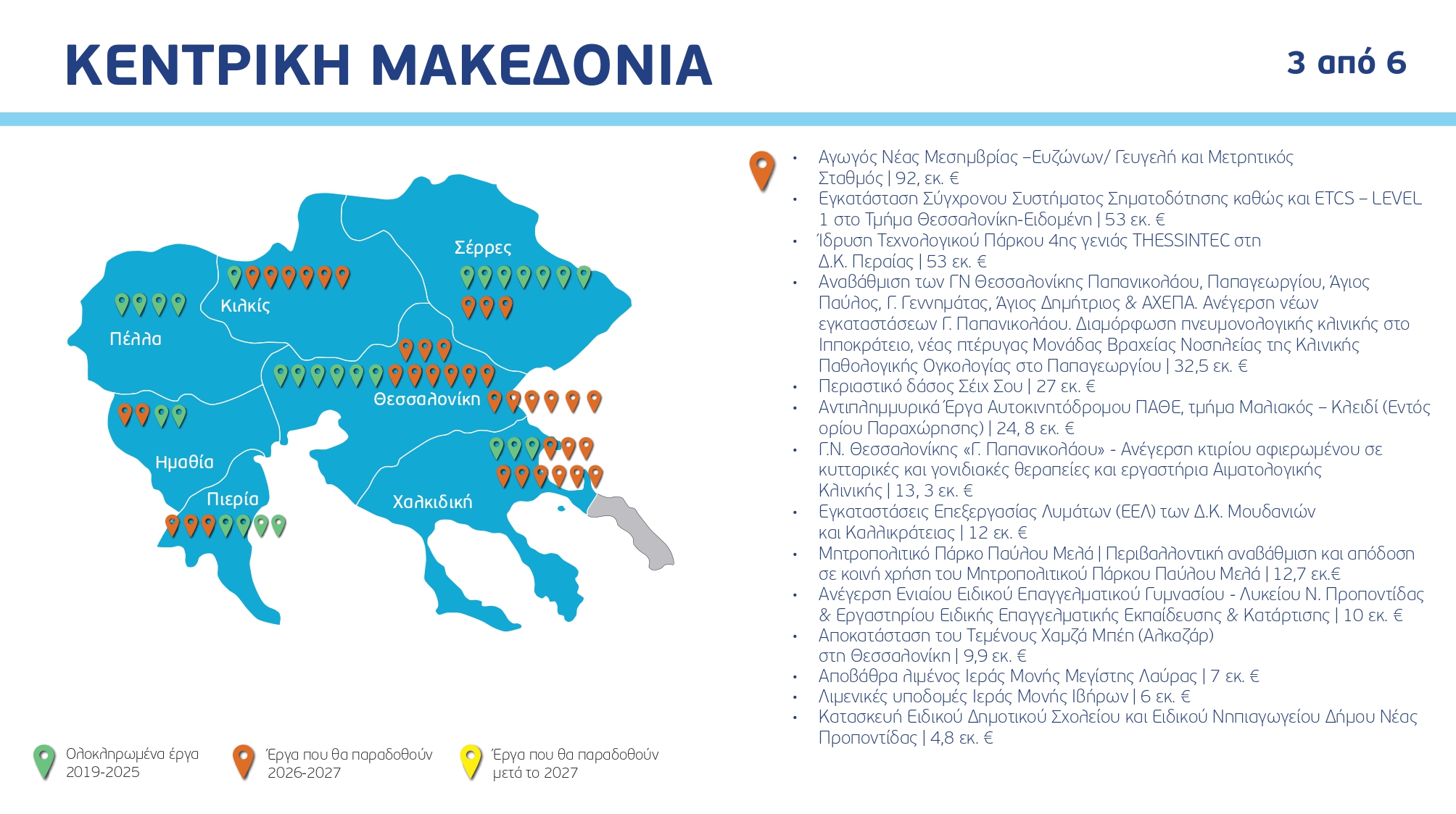 Ο χάρτης των έργων ανά Περιφέρεια και κατηγορία, με συγκεκριμένα ορόσημα και χρονοδιαγράμματα: