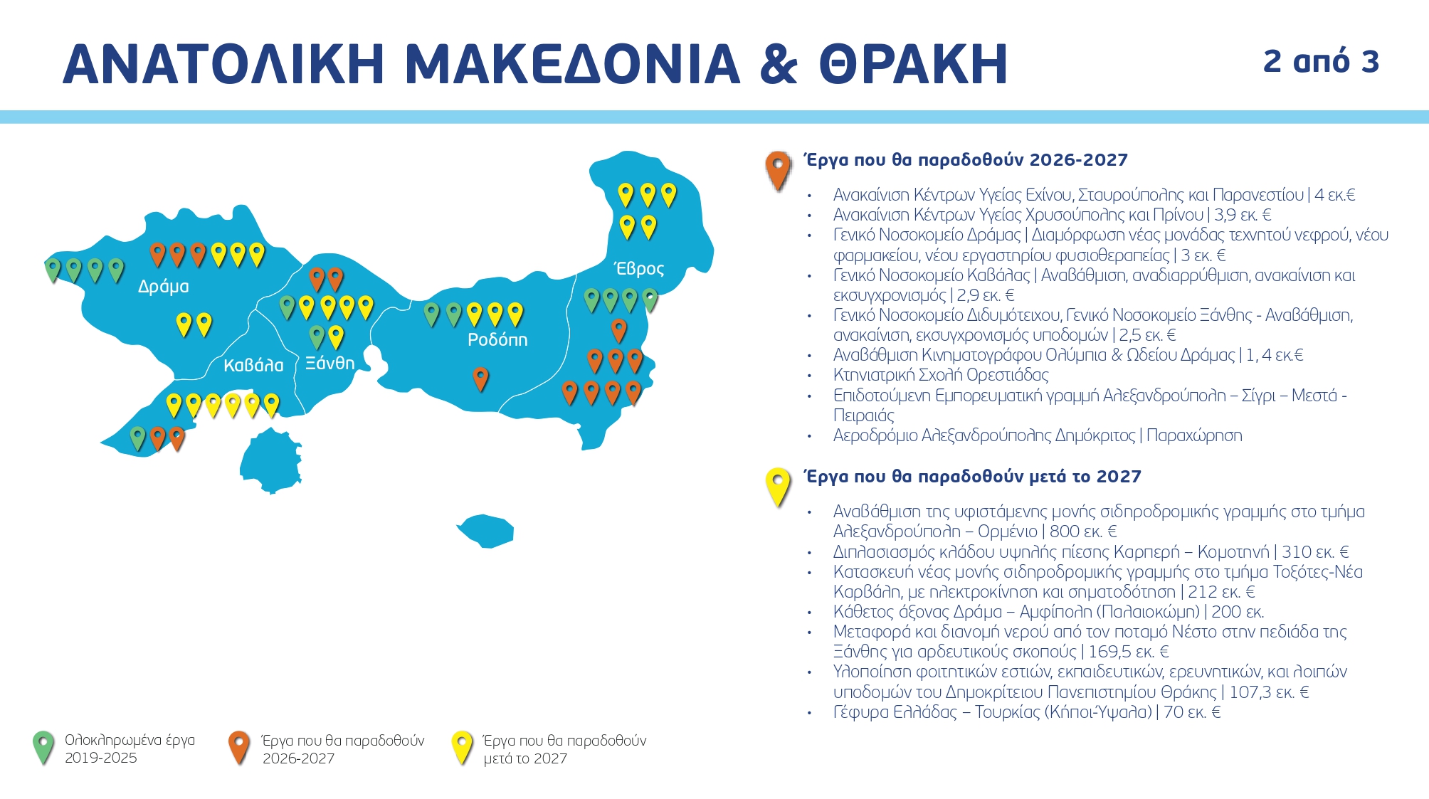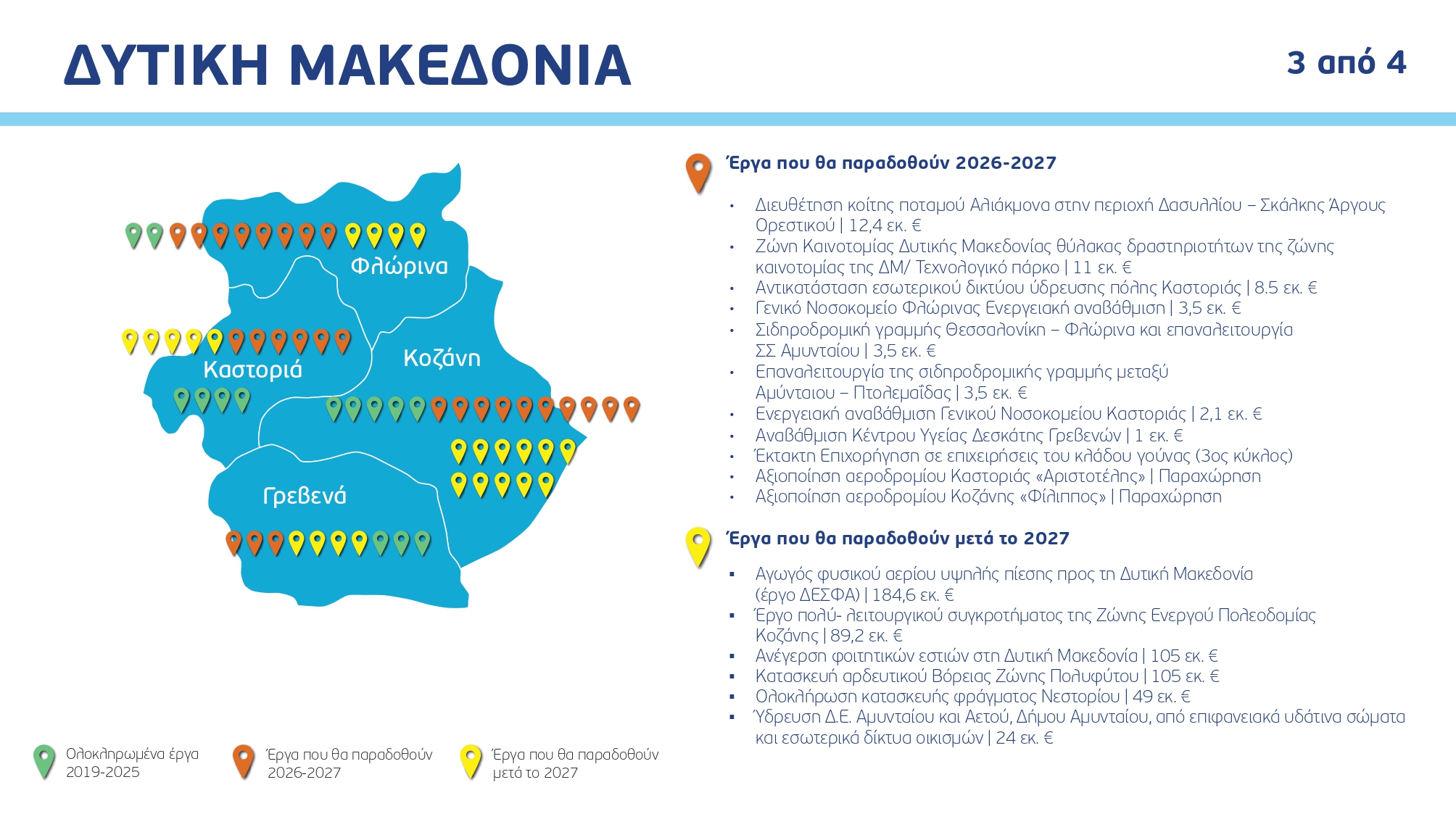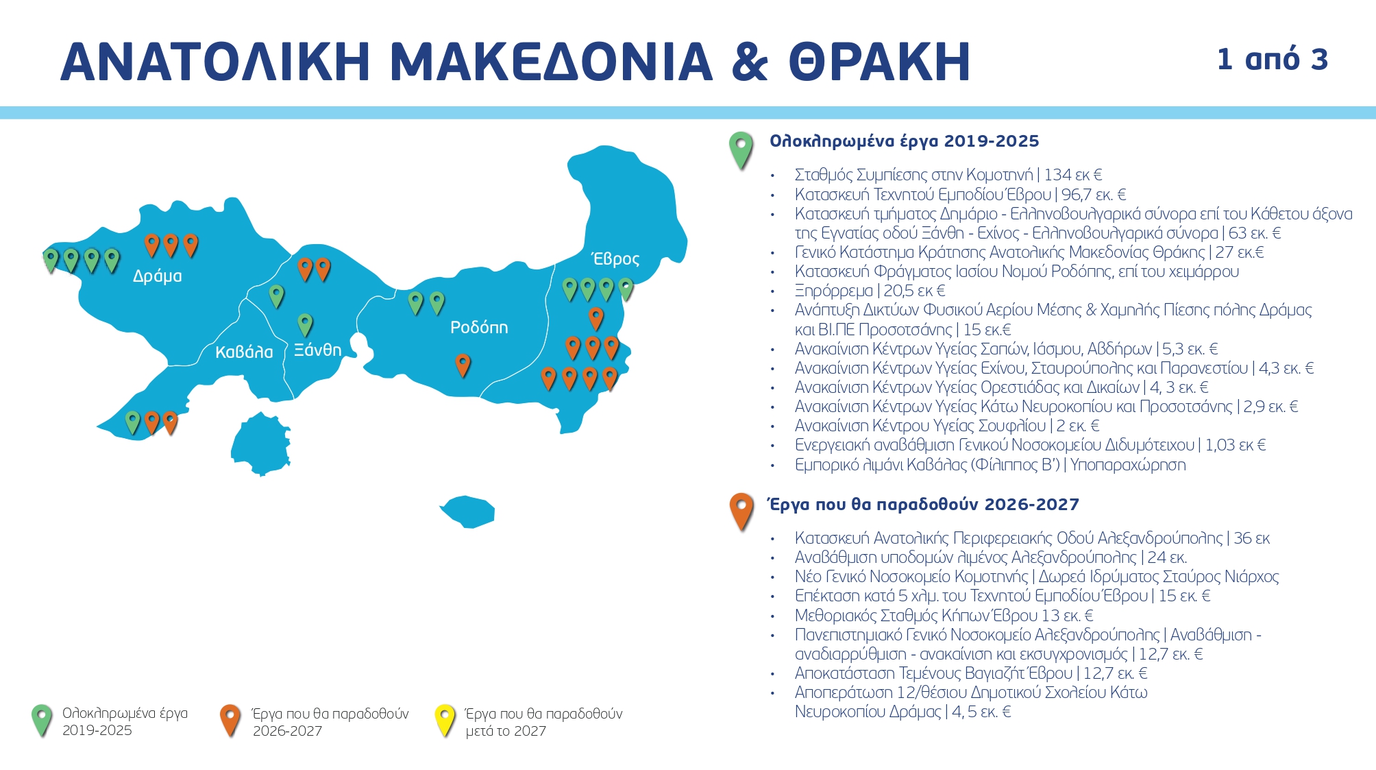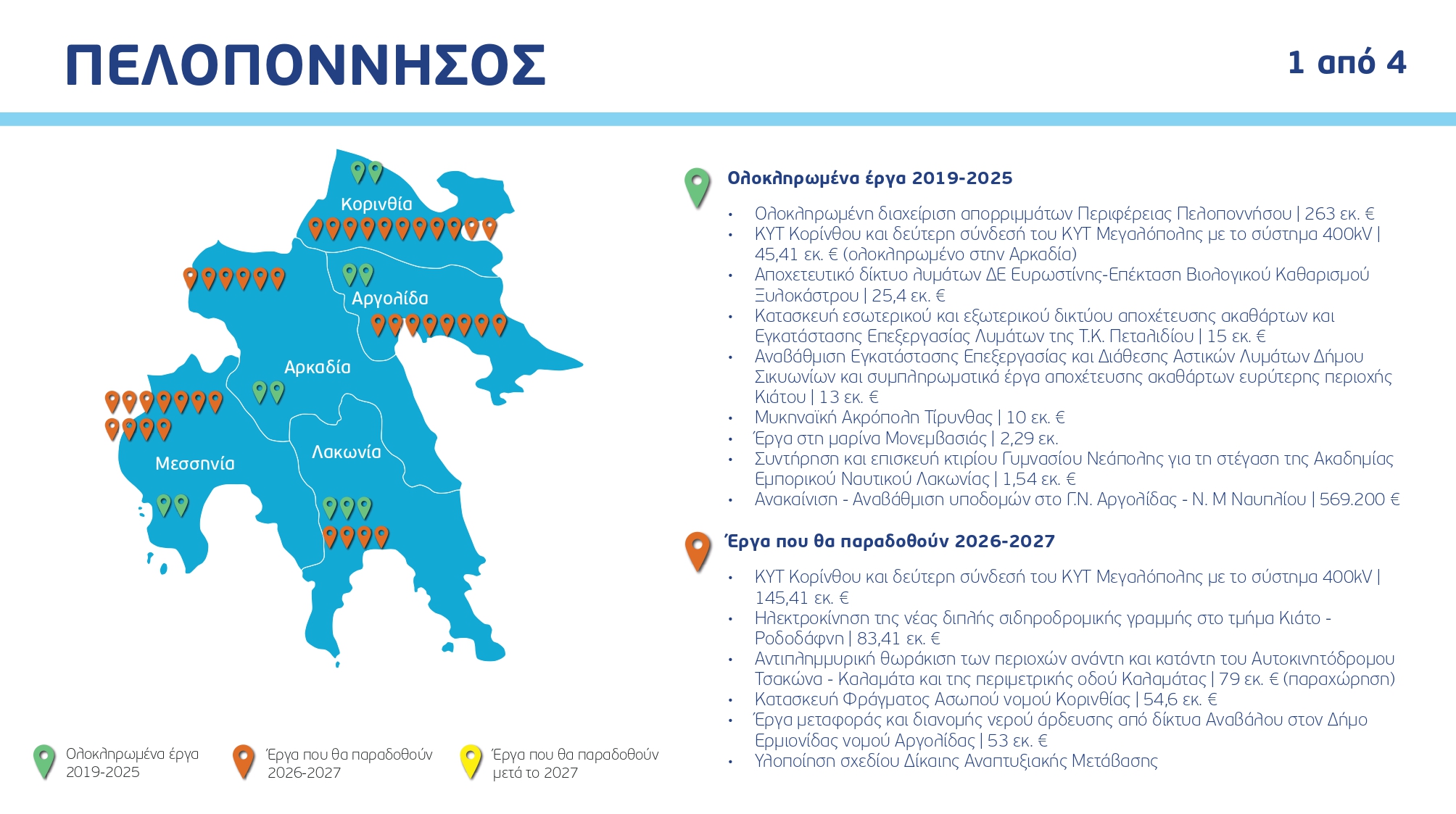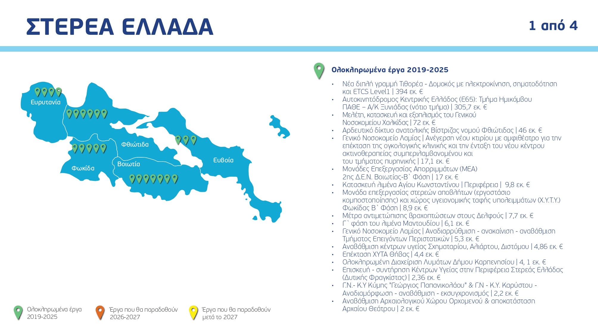 Ο χάρτης των έργων ανά Περιφέρεια και κατηγορία, με συγκεκριμένα ορόσημα και χρονοδιαγράμματα: