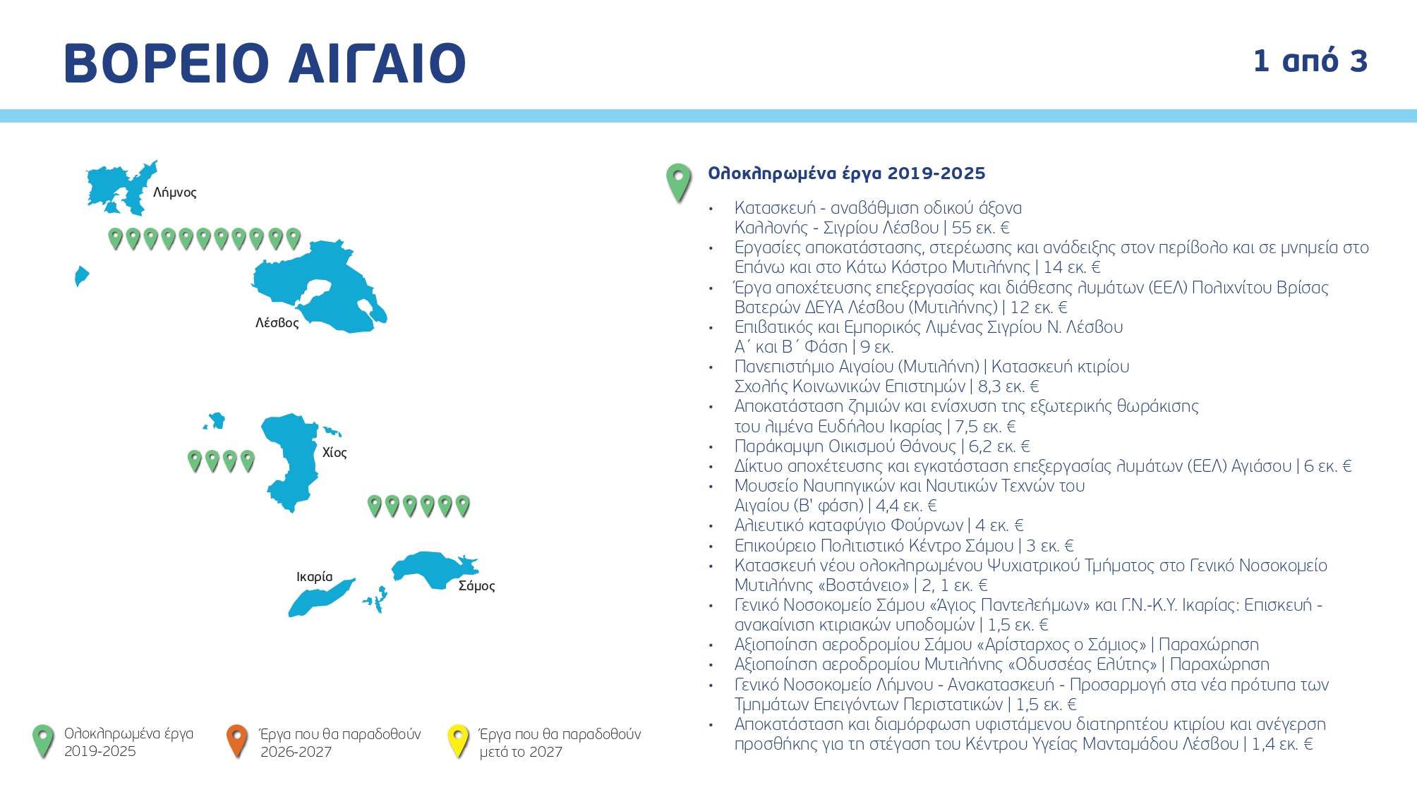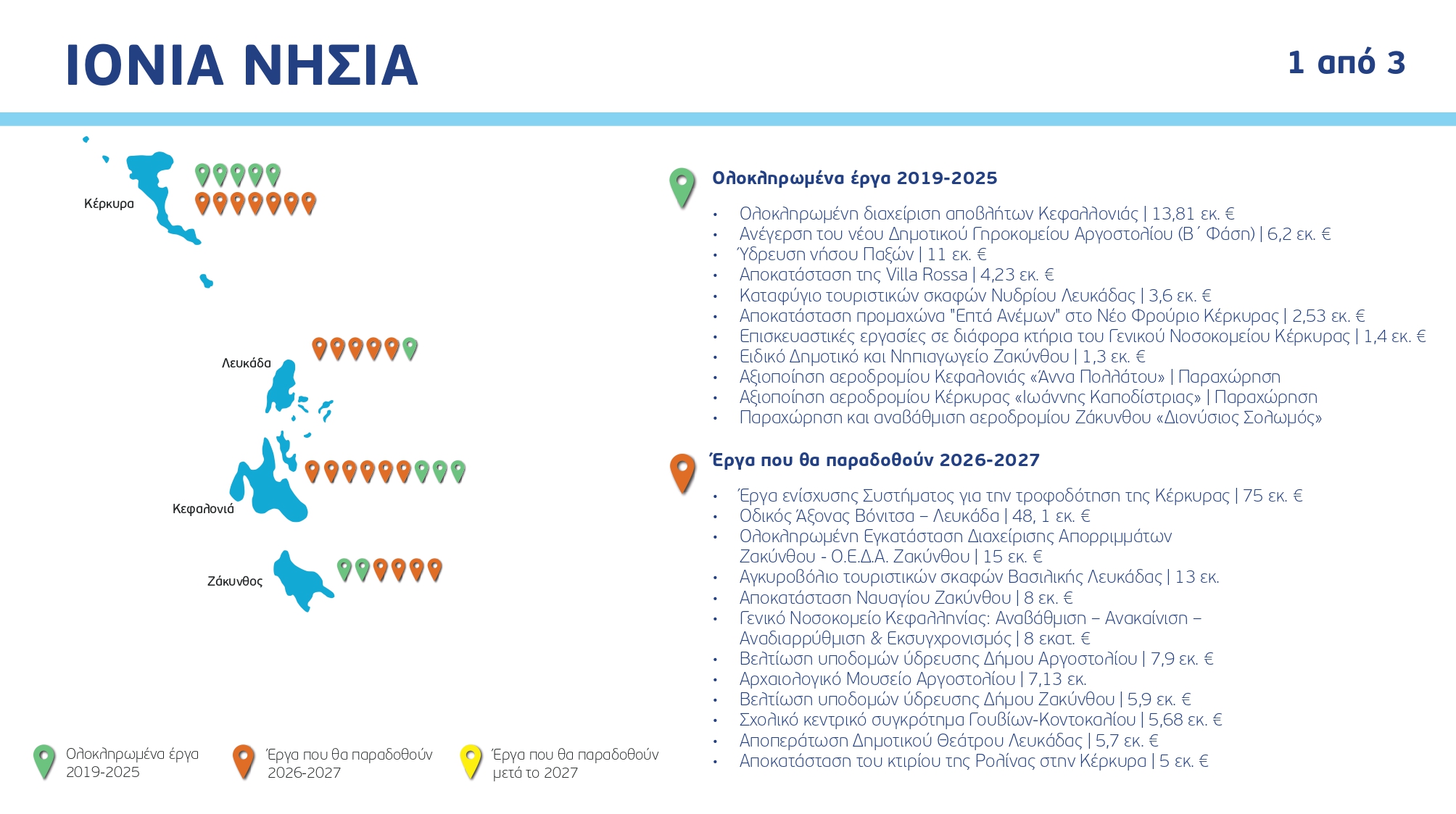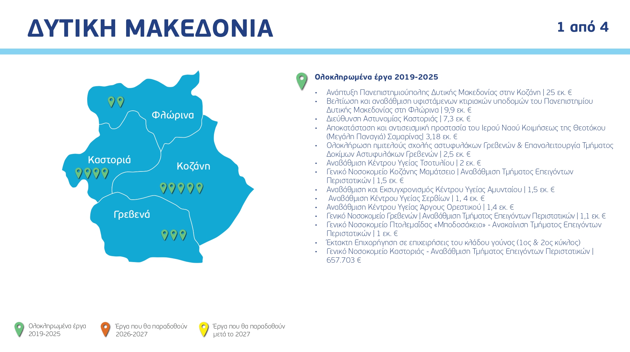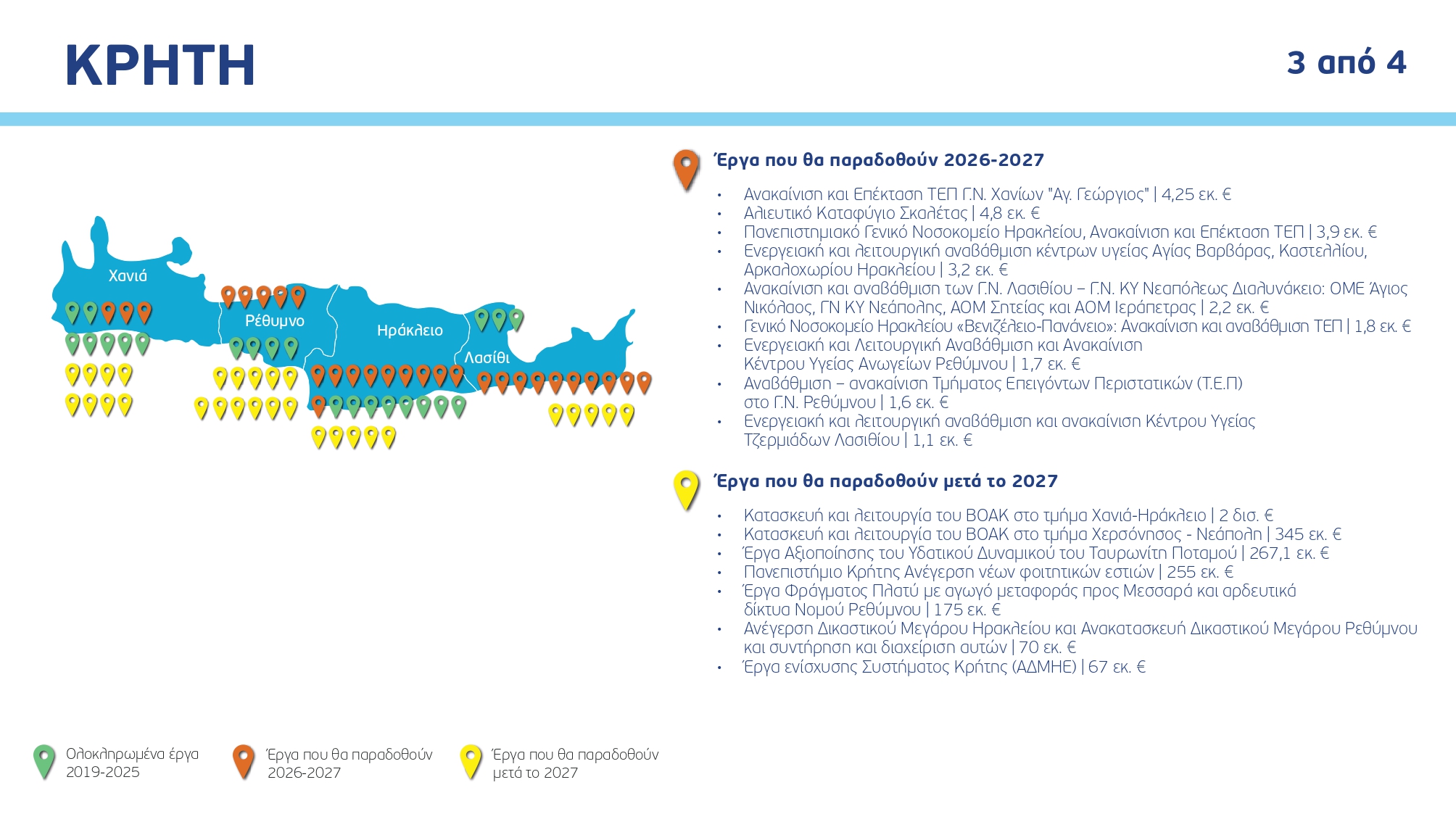 Ο χάρτης των έργων ανά Περιφέρεια και κατηγορία, με συγκεκριμένα ορόσημα και χρονοδιαγράμματα: