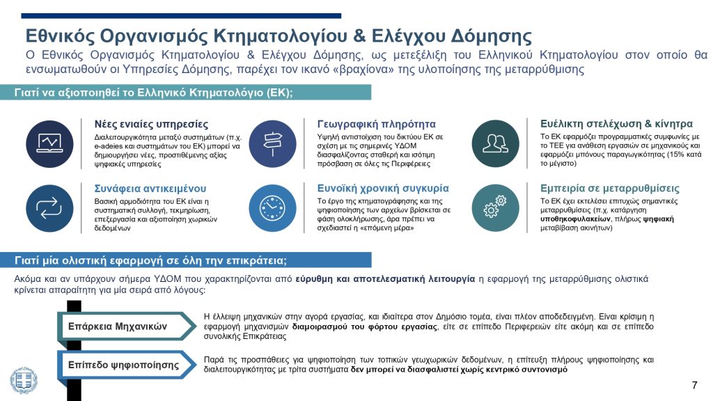 Τι επιτυγχάνεται με τη νέα μεταρρύθμιση που μετεξελίσσει το Κτηματολόγιο σε έναν Εθνικό Οργανισμό Κτηματολογίου και Ελέγχου Δόμησης (ΕΟΚΕΔ);