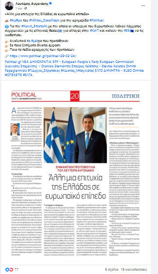 Η Political αποθεώνει τον Λευτέρη Αυγενάκη- «Άλλη μια επιτυχία της Ελλάδας σε ευρωπαϊκό επίπεδο»