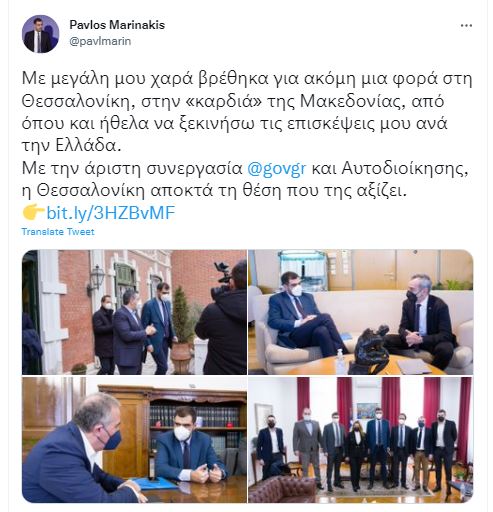 «Με την άριστη συνεργασία @govgr και Αυτοδιοίκησης, η Θεσσαλονίκη αποκτά τη θέση που της αξίζει» σημειώνει.