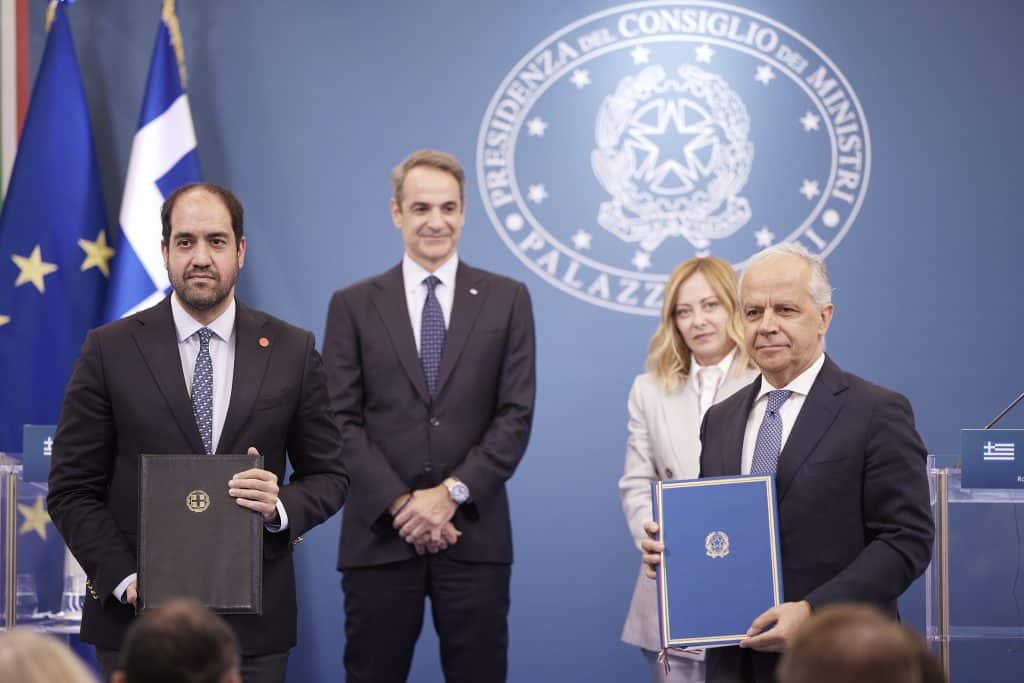 Στον τομέα της ενέργειας υπάρχουν και άλλες πτυχές που προσφέρουν σημαντικές ευκαιρίες για συνεργασία, όπως τα έργα δέσμευσης και αποθήκευσης διοξειδίου του άνθρακα, όπου η Ελλάδα έχει τεχνογνωσία και ευρωπαϊκή χρηματοδότηση, η Ιταλία έχει τις κοιλότητες, τους χώρους όπου μπορεί να αποθηκευτεί αυτό το διοξείδιο. Και θα μπορούσε ενδεχομένως να είναι ένα πρότυπο πιλοτικό πρόγραμμα για να δείξουμε ότι οι χώρες του νότου, αγαπητή Giorgia, είναι στην πρώτη γραμμή αυτής της μεγάλης τεχνολογικής επανάστασης.