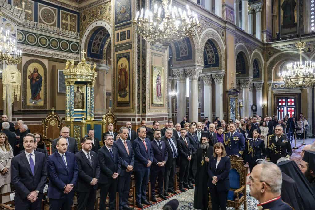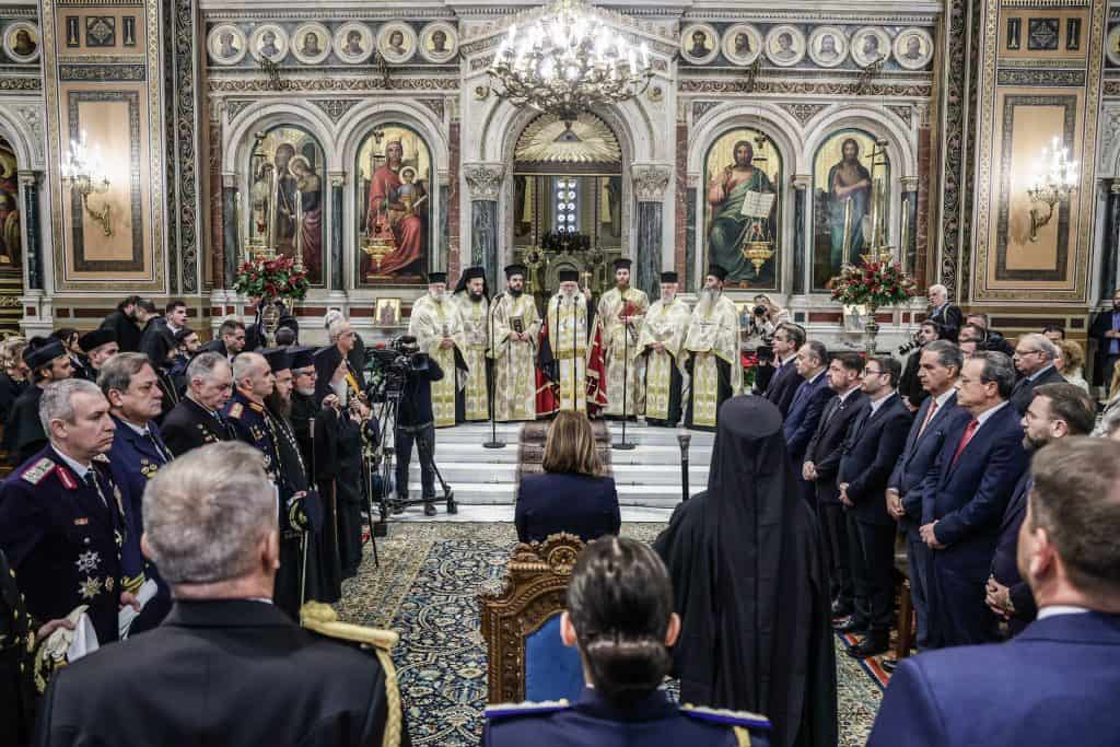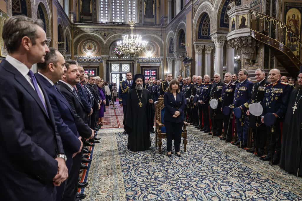 Πριν από τις ευχές που δέχεται στο Προεδρικό Μέγαρο, η Κατερίνα Σακελλαροπούλου βρέθηκε στη δοξολογία για τον εορτασμό του νέου έτους στον Καθεδρικό Ναό Αθηνών, παρουσία και του Πρωθυπουργού, χοροστατούντος του Αρχιεπισκόπου Αθηνών και πάσης Ελλάδος Ιερωνύμου. Παρόντες φυσικά ήταν ο αρχηγός αξιωματικής αντιπολίτευσης, ο πρόεδρος του ΣΥΡΙΖΑ, ο περιφερειάρχης Αττικής και ο δήμαρχος Αθηναίων, ο οποίος και υποδέχτηκε τους καλεσμένους.