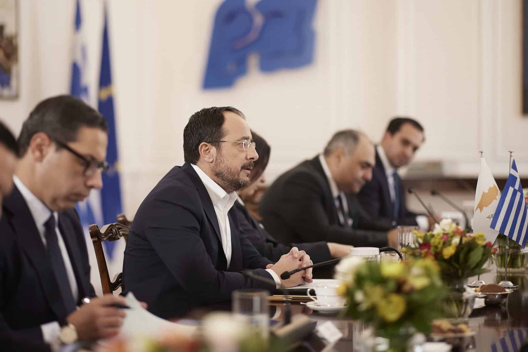 Νίκος Χριστοδουλίδης: Φίλε Κυριάκο, να εκφράσω την ιδιαίτερα χαρά που έχω πάντα όταν βρίσκομαι στην Αθήνα.