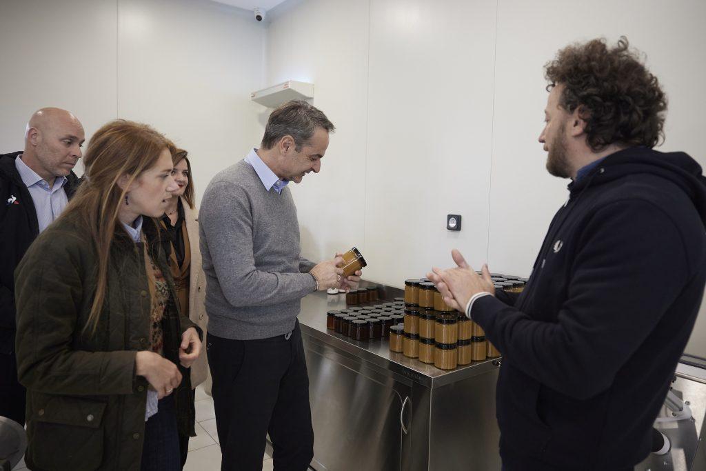 Τον κ. Μητσοτάκη υποδέχτηκαν οι ιδιοκτήτες Νίκος και Άλκης Χήτος, ο γενικός διευθυντής Γιάννης Σώτος και ο τεχνικός διευθυντής Χρήστος Πρέντζας.