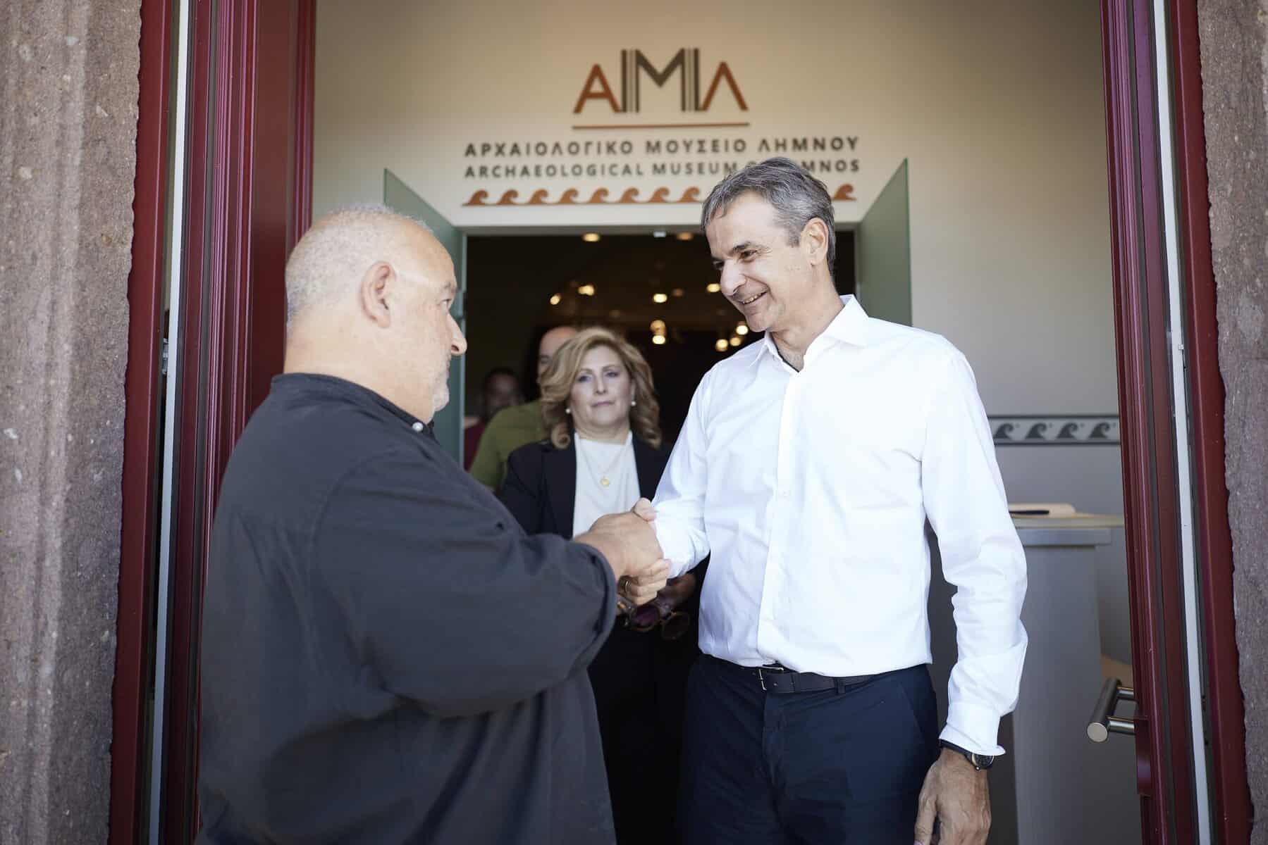 Νωρίτερα, ο Πρωθυπουργός επισκέφθηκε το πλήρως ανακαινισμένο Αρχαιολογικό Μουσείο Λήμνου, όπου ξεναγήθηκε από τον προϊστάμενο της Εφορείας Αρχαιοτήτων Λέσβου Παύλο Τριανταφυλλίδη. Το ανακαινισμένο Μουσείο εγκαινιάστηκε στις 2 Αυγούστου και υιοθετώντας σύγχρονη μουσειολογική προσέγγιση και ψηφιακές εφαρμογές προσφέρει «ζωντανή» αφήγηση για τον πολιτισμό και την ιστορία της Λήμνου, από την προϊστορική έως τη ρωμαϊκή περίοδο.