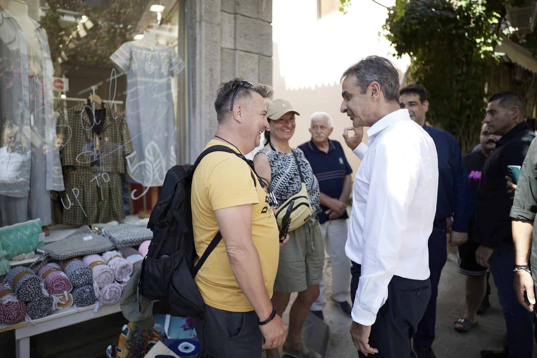 Στη συνέχεια ο Κυριάκος Μητσοτάκης περπάτησε στην αγορά της Μύρινας όπου είχε την ευκαιρία να συνομιλήσει με επιχειρηματίες και κατοίκους, ενώ επισκέφθηκε και τη μονάδα φροντίδας ηλικιωμένων της Λήμνου «Ο Καλός Σαμαρείτης».