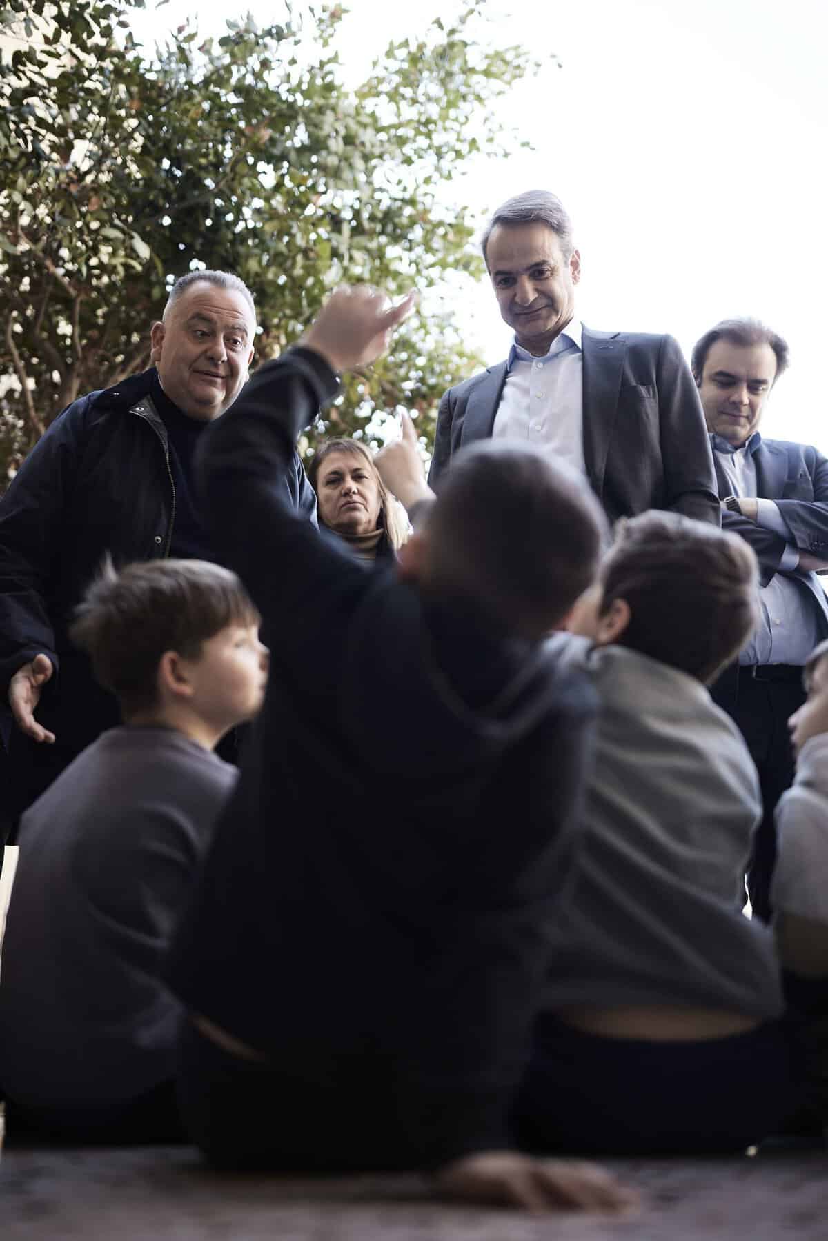Στο πλαίσιο της επίσκεψης, ο Κυριάκος Μητσοτάκης συνομίλησε με εκπαιδευτικούς και μαθητές για την καθημερινότητά τους στο σχολείο και ενημερώθηκε για τον σύγχρονο τεχνολογικό εξοπλισμό που πλέον διαθέτει το σχολείο, με αιχμή τους διαδραστικούς πίνακες στις αίθουσες της Ε’ και της ΣΤ’ τάξης, με αποτέλεσμα την αναβάθμιση της σχολικής εμπειρίας και την υποβοήθηση του έργου των εκπαιδευτικών.