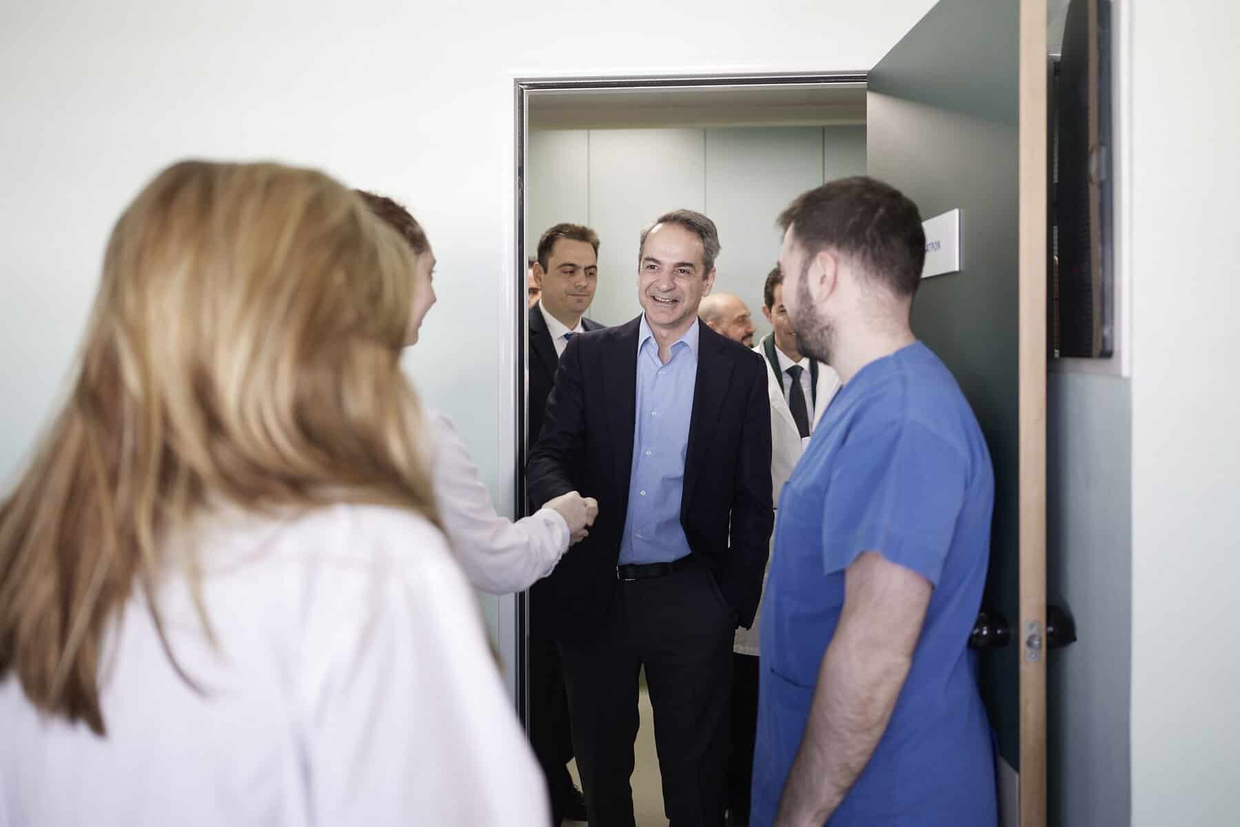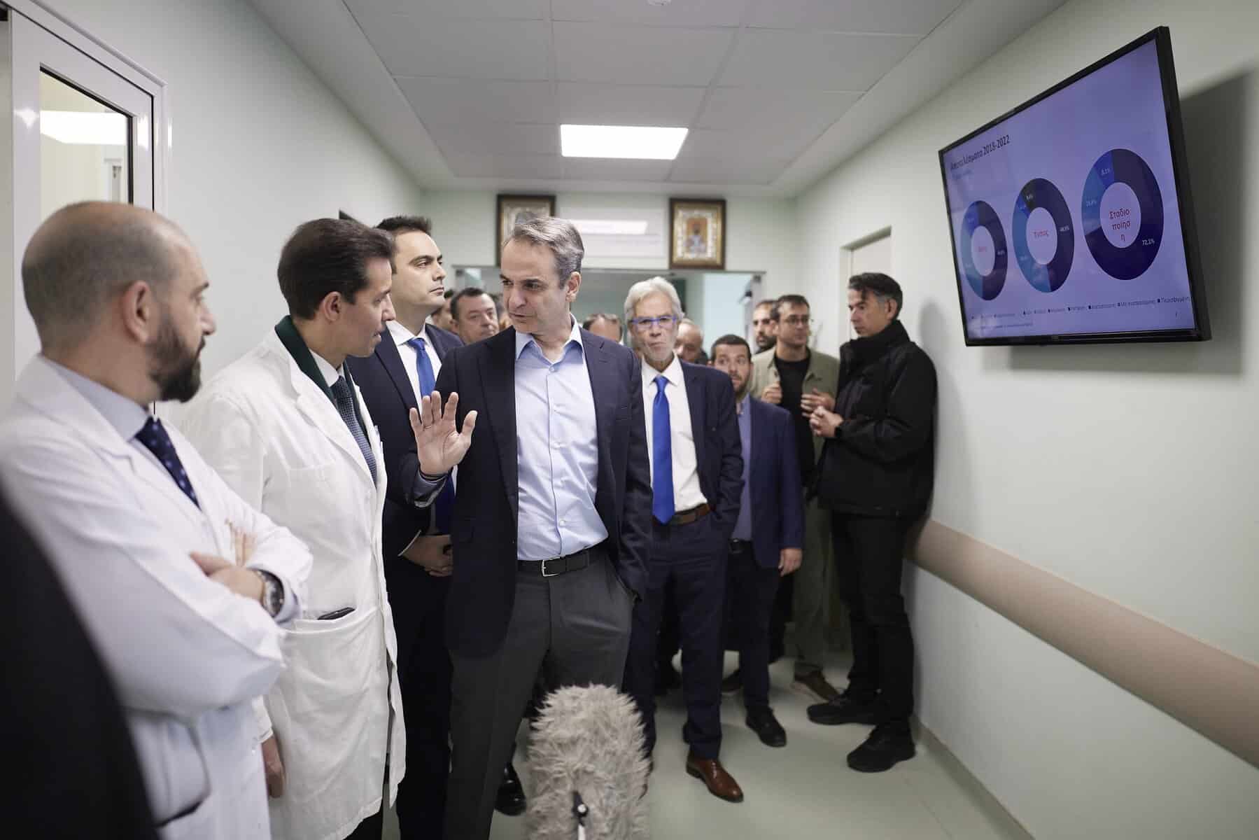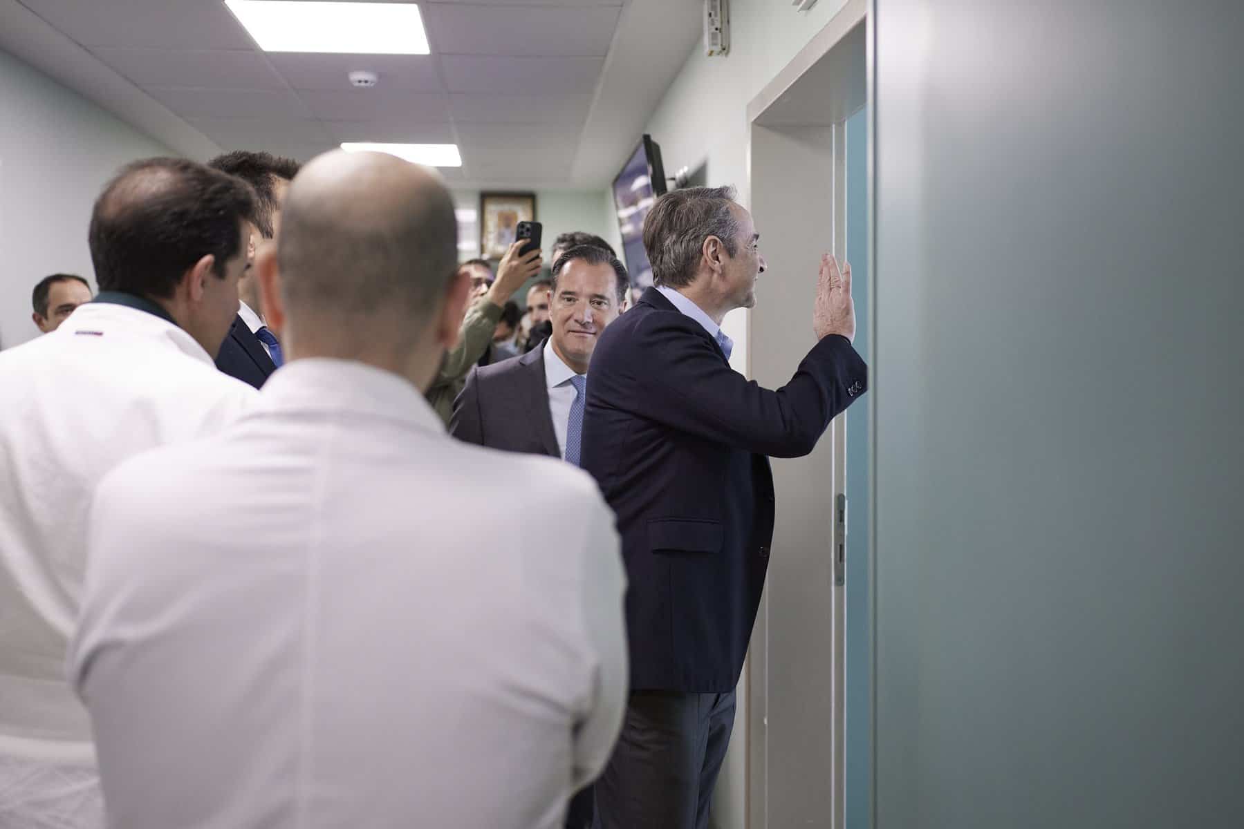 Ο Πρωθυπουργός ξεναγήθηκε από τον Υπουργό Υγείας Άδωνι Γεωργιάδη και τον Διοικητή του νοσοκομείου, Αναστάσιο Μύτολγου, στον 4ο και τον 5ο όροφο, όπου έχουν παραδοθεί αναβαθμισμένες μονάδες νευροχειρουργικής, χειρουργικής και παθολογικής. Είχε επίσης την ευκαιρία να επισκεφτεί ξανά τις ανακαινισμένες εγκαταστάσεις στον 1ο και τον 3ο όροφο, όπου τα έργα ολοκληρώθηκαν στις αρχές του περασμένου έτους.