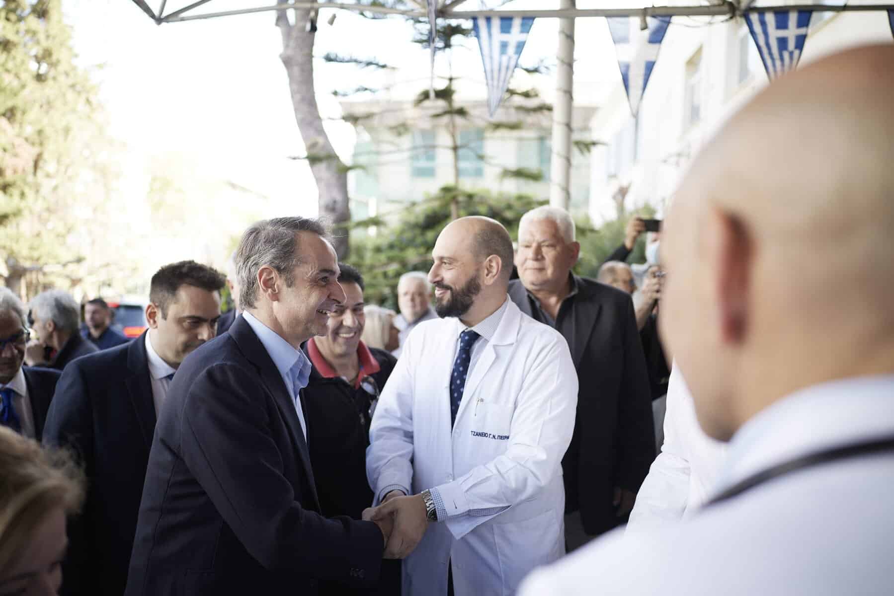 Ο Κυριάκος Μητσοτάκης είχε την ευκαιρία να συνομιλήσει με εργαζόμενους και ασθενείς, οι οποίοι επισήμαναν τη ριζική βελτίωση των υποδομών του Τζανείου και τη μεγάλη προσπάθεια που γίνεται για την αναμόρφωση του Εθνικού Συστήματος Υγείας.