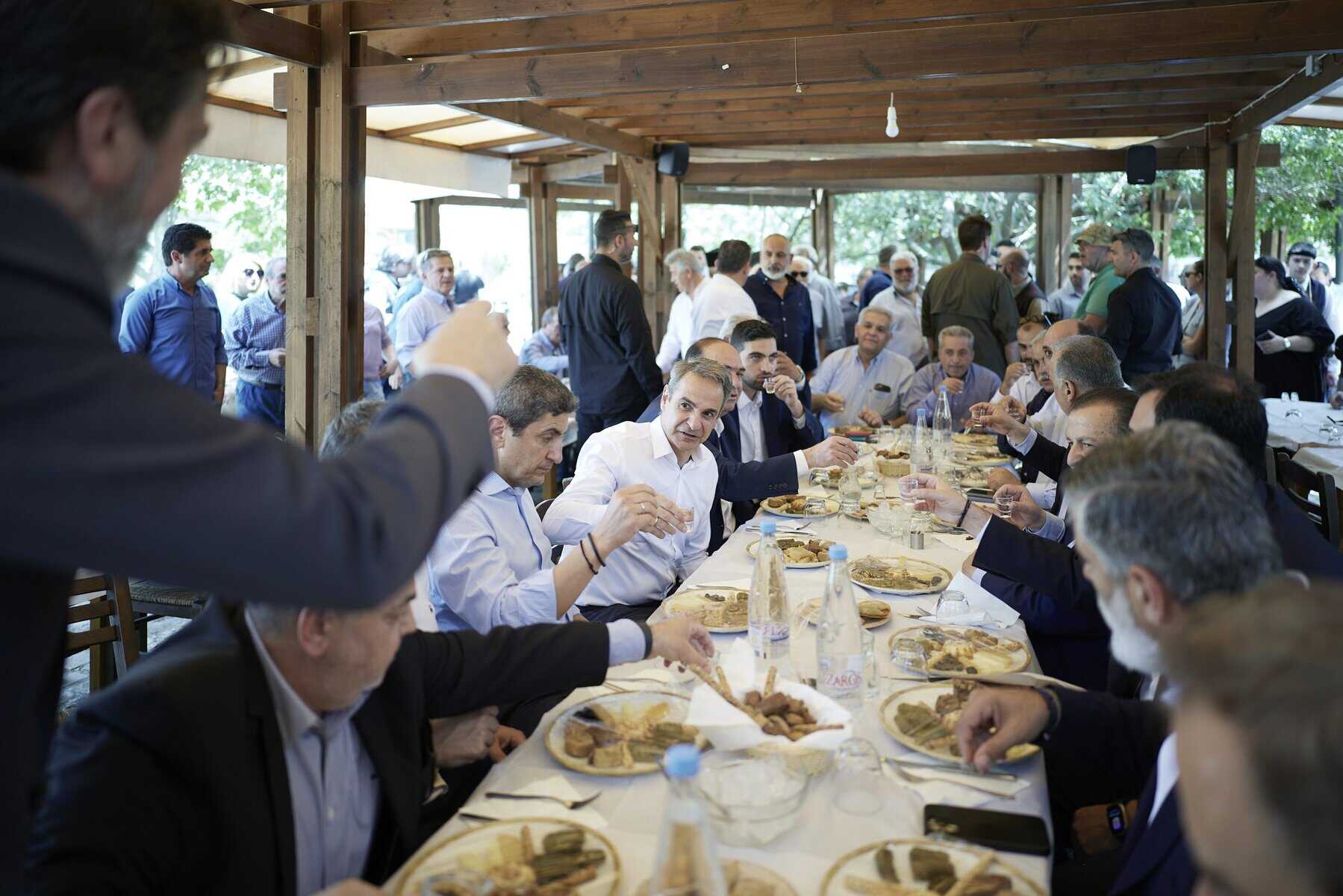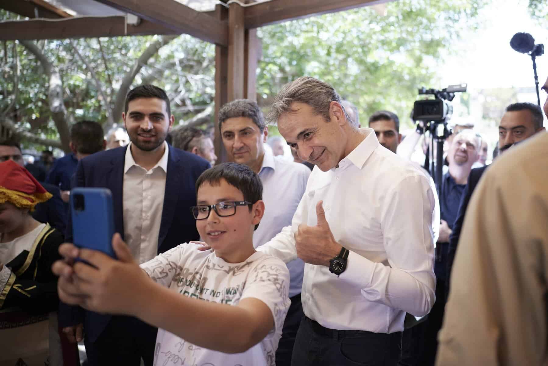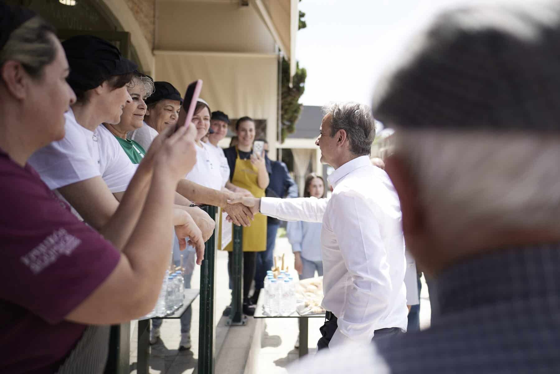 Νωρίτερα, ο πρωθυπουργός μετέβη στα Πεζά Ηρακλείου, όπου επισκέφθηκε την εκκλησία του χωριού και συνομίλησε με τον δήμαρχο Αρχανών-Αστερουσίων Μανώλη Κοκοσάλη και κατοίκους, οι οποίοι του προσέφεραν τοπικά προϊόντα.