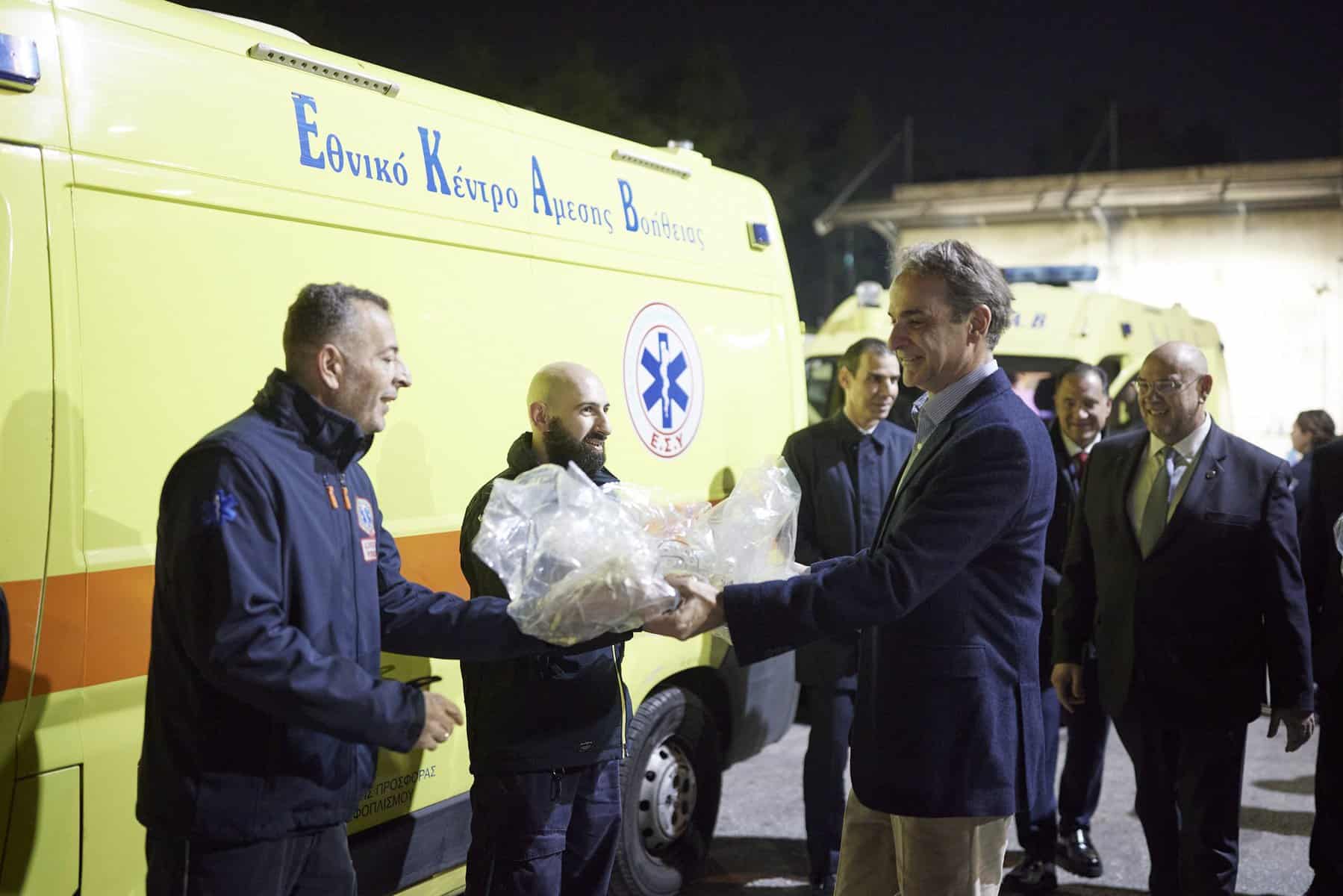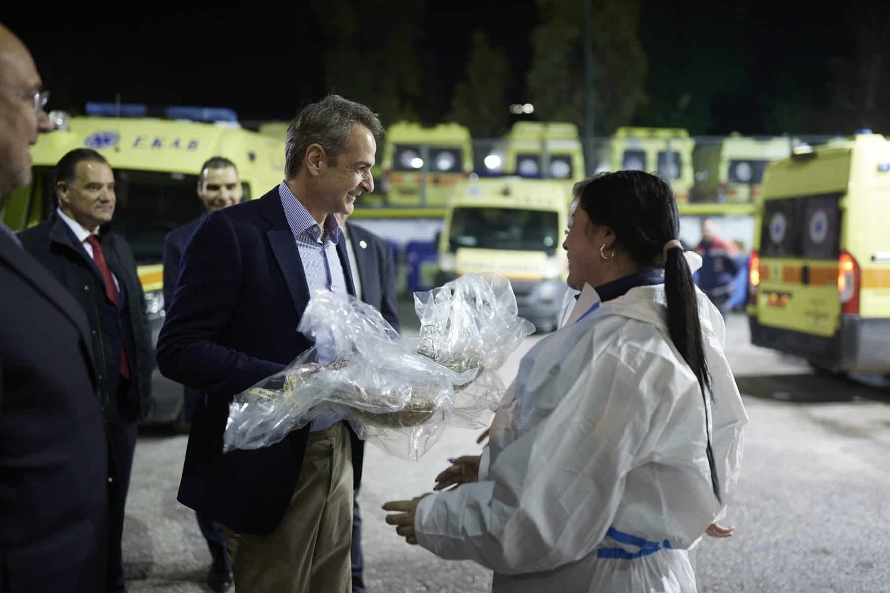 «Την ώρα που οι περισσότεροι βρίσκονται με τις οικογένειές τους και περιμένουν το νέο έτος, κάποιοι εργάζονται ακούραστα για να είμαστε όλοι ασφαλείς. Βρέθηκα απόψε στο ΕΚΑΒ για να ευχαριστήσω από κοντά τους ανθρώπους που είναι πάντα στην πρώτη γραμμή» ανάφερε σε ανάρτησή του στα μέσα κοινωνικής δικτύωσης ο πρωθυπουργός.
