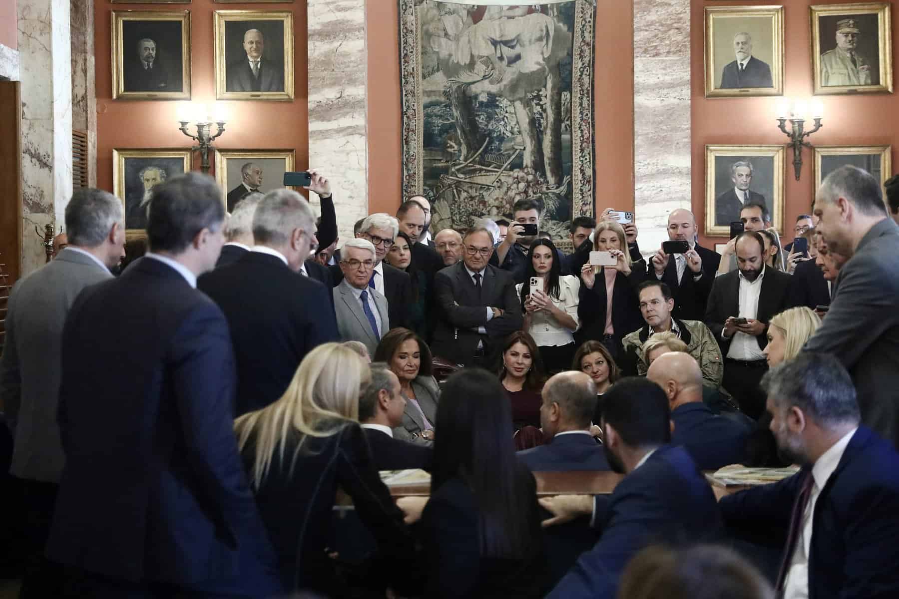 Αμέσως μετά το τέλος της ομιλίας του στο πλαίσιο της «Ώρας του Πρωθυπουργού» στη Βουλή, ο Κυριάκος Μητσοτάκης είχε την ευκαιρία να συναντήσει και συνομιλήσει με βουλευτές της Νέας Δημοκρατίας για περίπου 20 λεπτά στο εντευκτήριο της Βουλής.