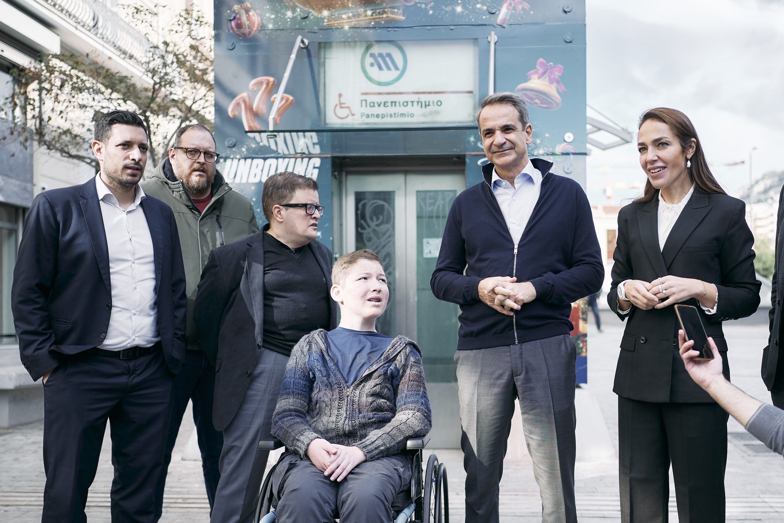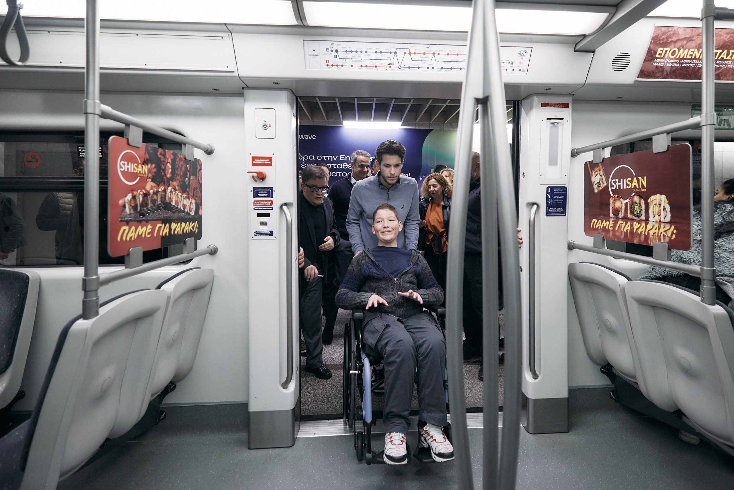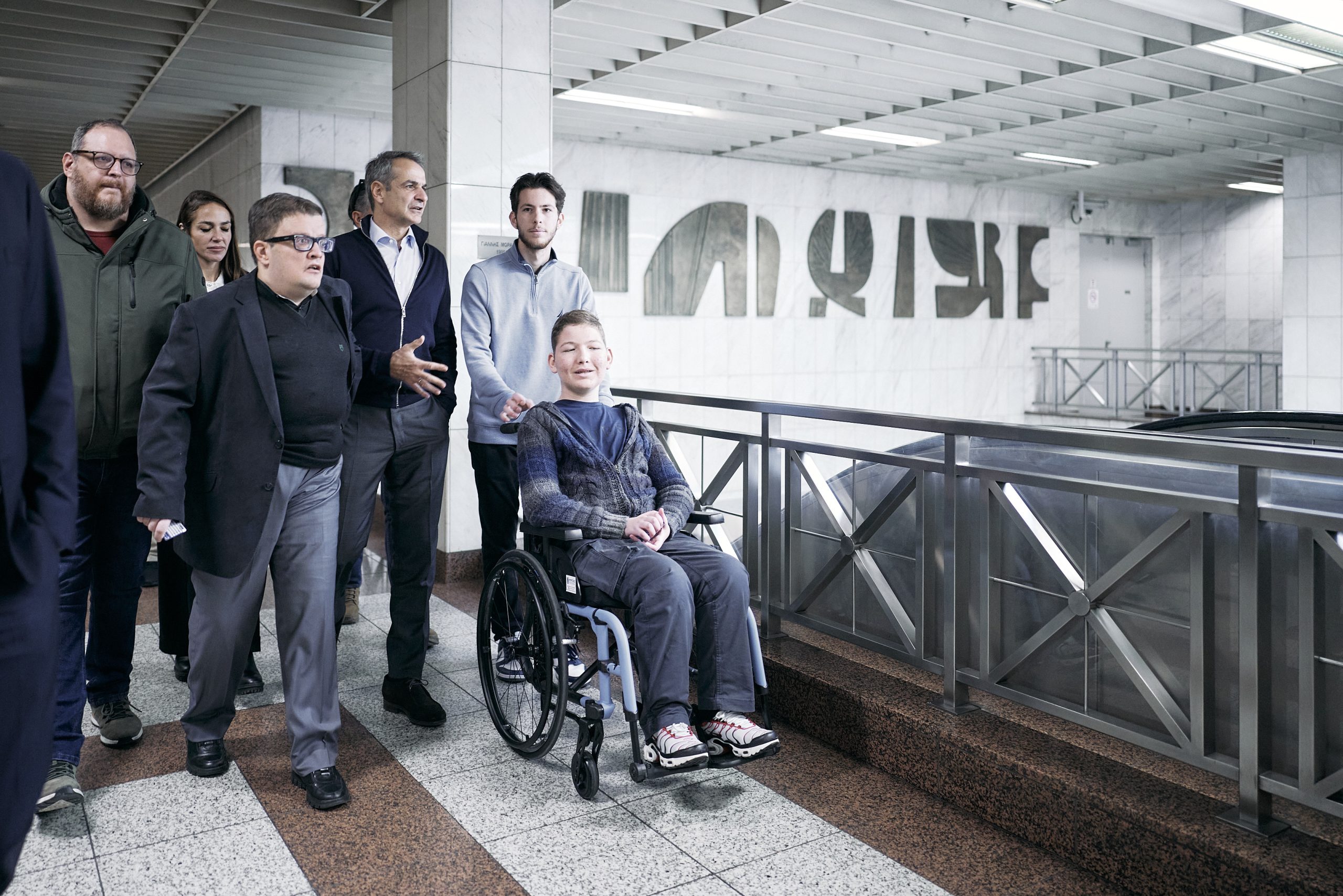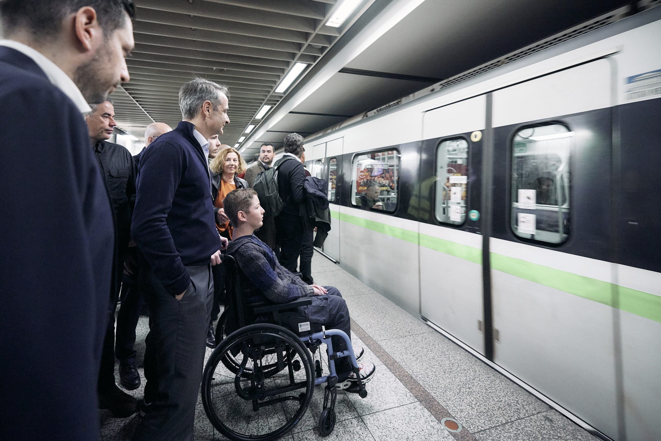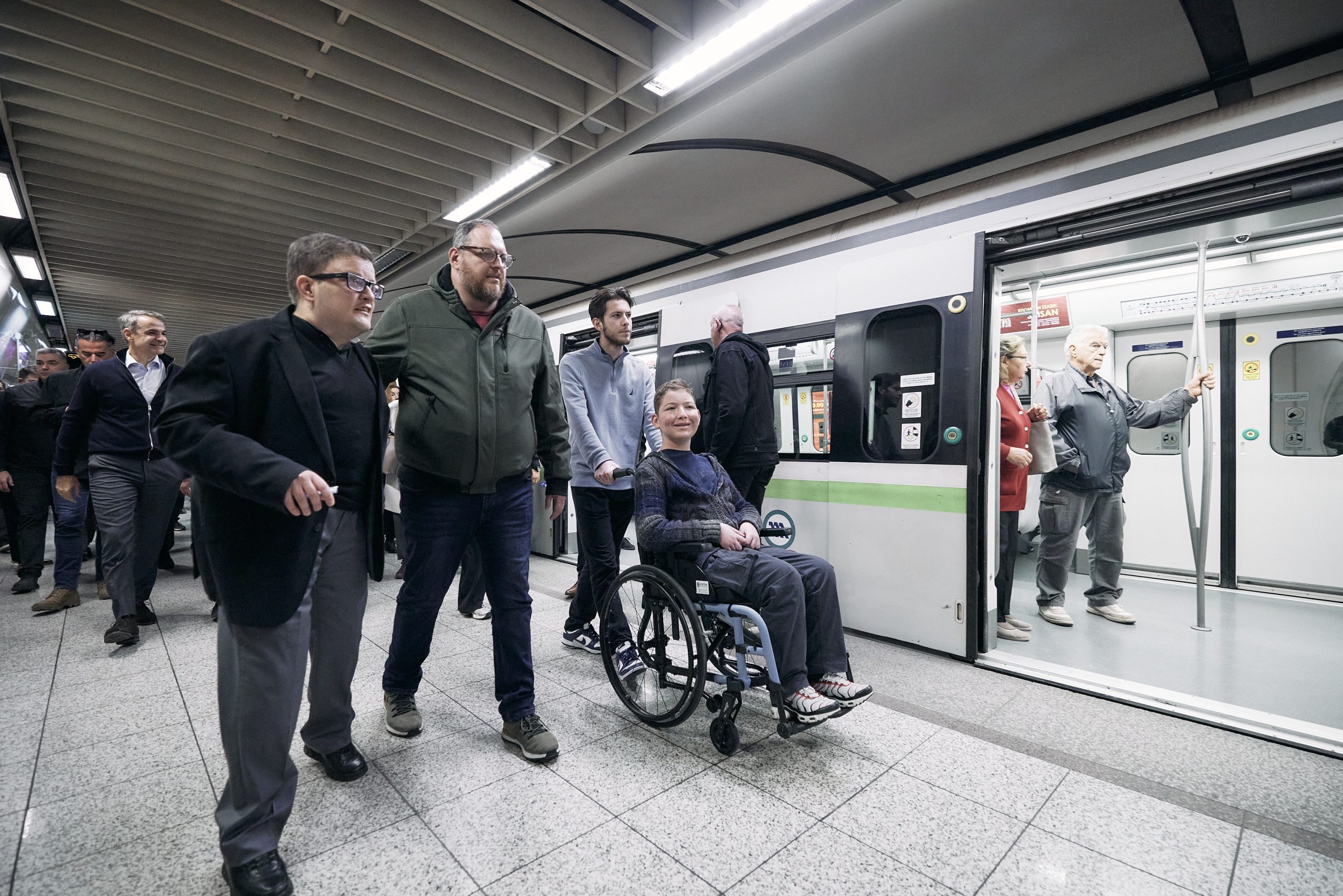 Ο Πρωθυπουργός, συνοδευόμενος από την Υπουργό Κοινωνικής Συνοχής και Οικογένειας Δόμνα Μιχαηλίδου, τον Υπουργό Ψηφιακής Διακυβέρνησης Δημήτρη Παπαστεργίου και τον Αναπληρωτή Υπουργό Υποδομών και Μεταφορών Κωνσταντίνο Κυρανάκη, είχε την ευκαιρία να δει τις άρτιες υποδομές προσβασιμότητας που διαθέτει το Μετρό και επιβιβάστηκε σε συρμό μαζί με τον Πέτρο και τον Παναγιώτη, ενώ είχε την ευκαιρία να συνομιλήσει με εργαζόμενους.