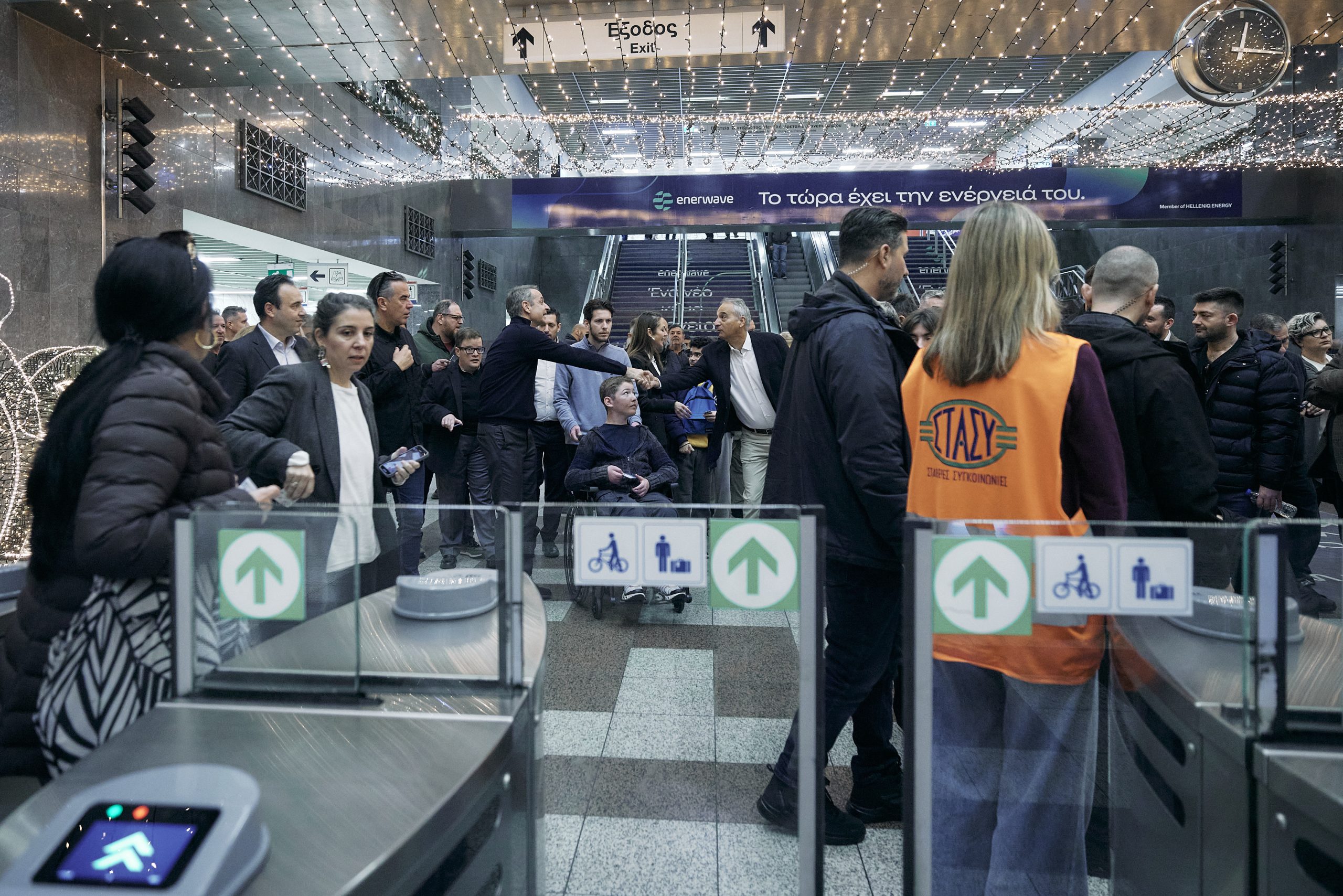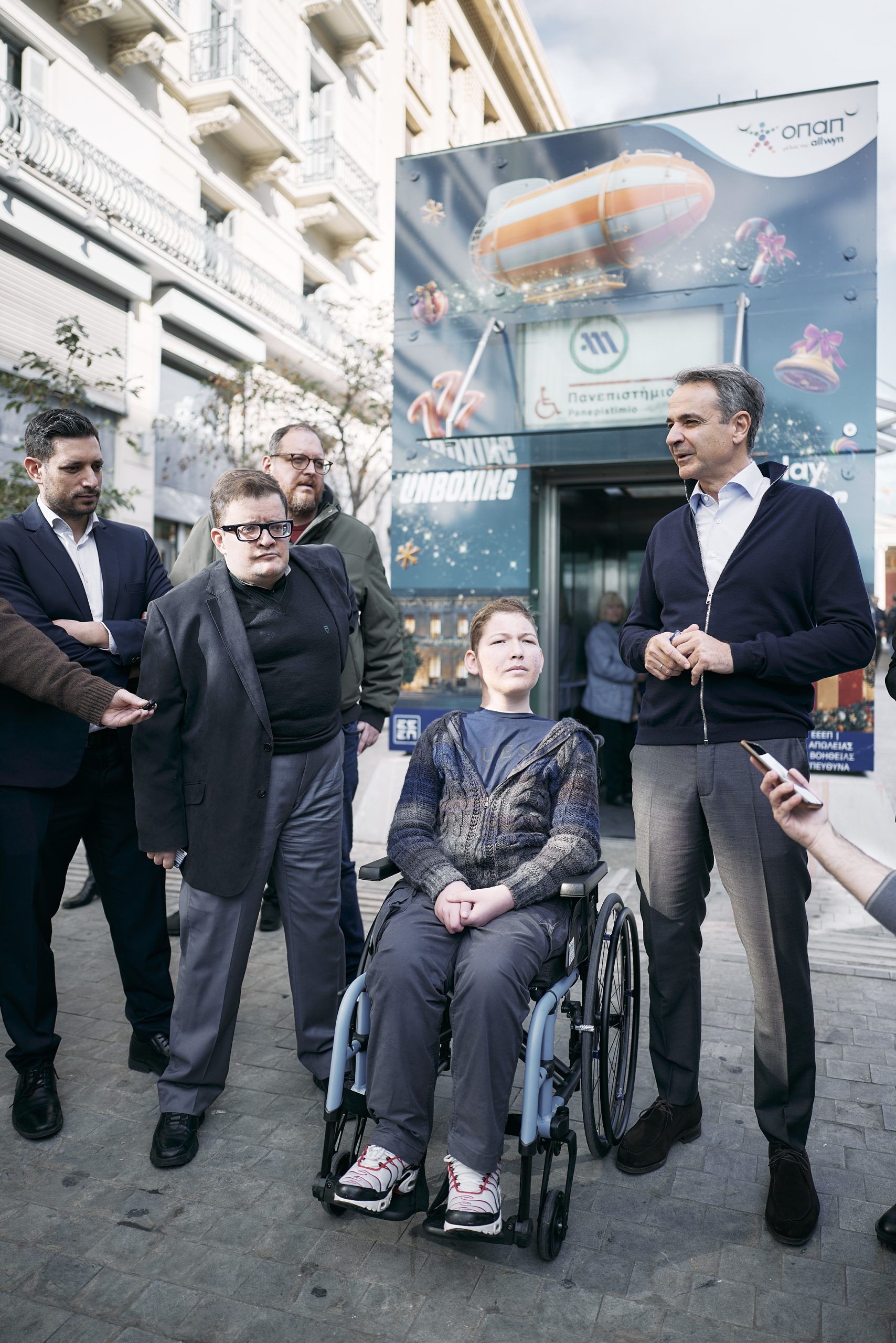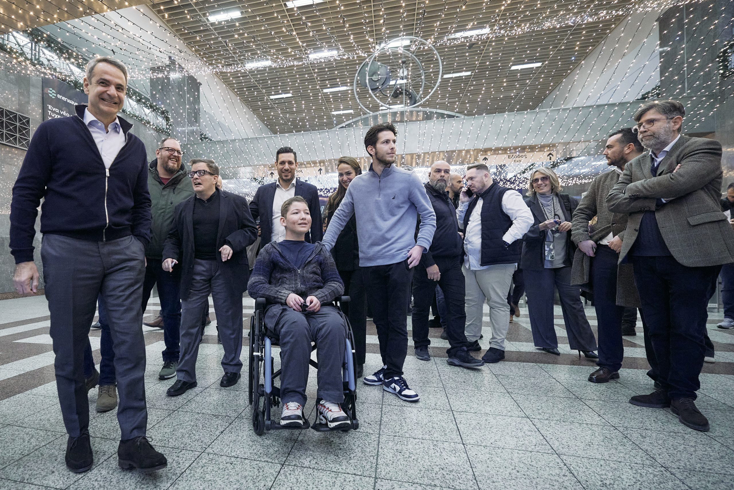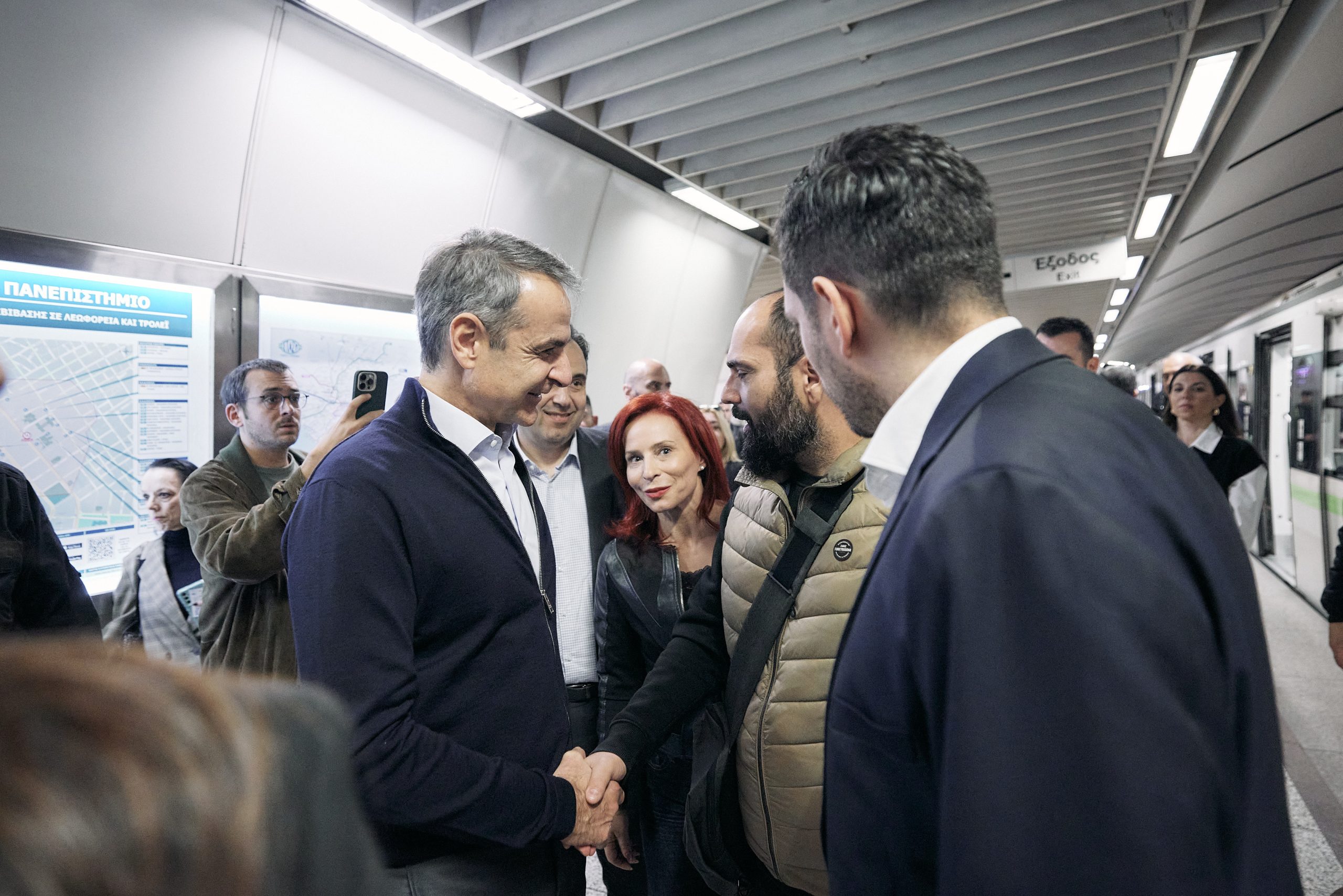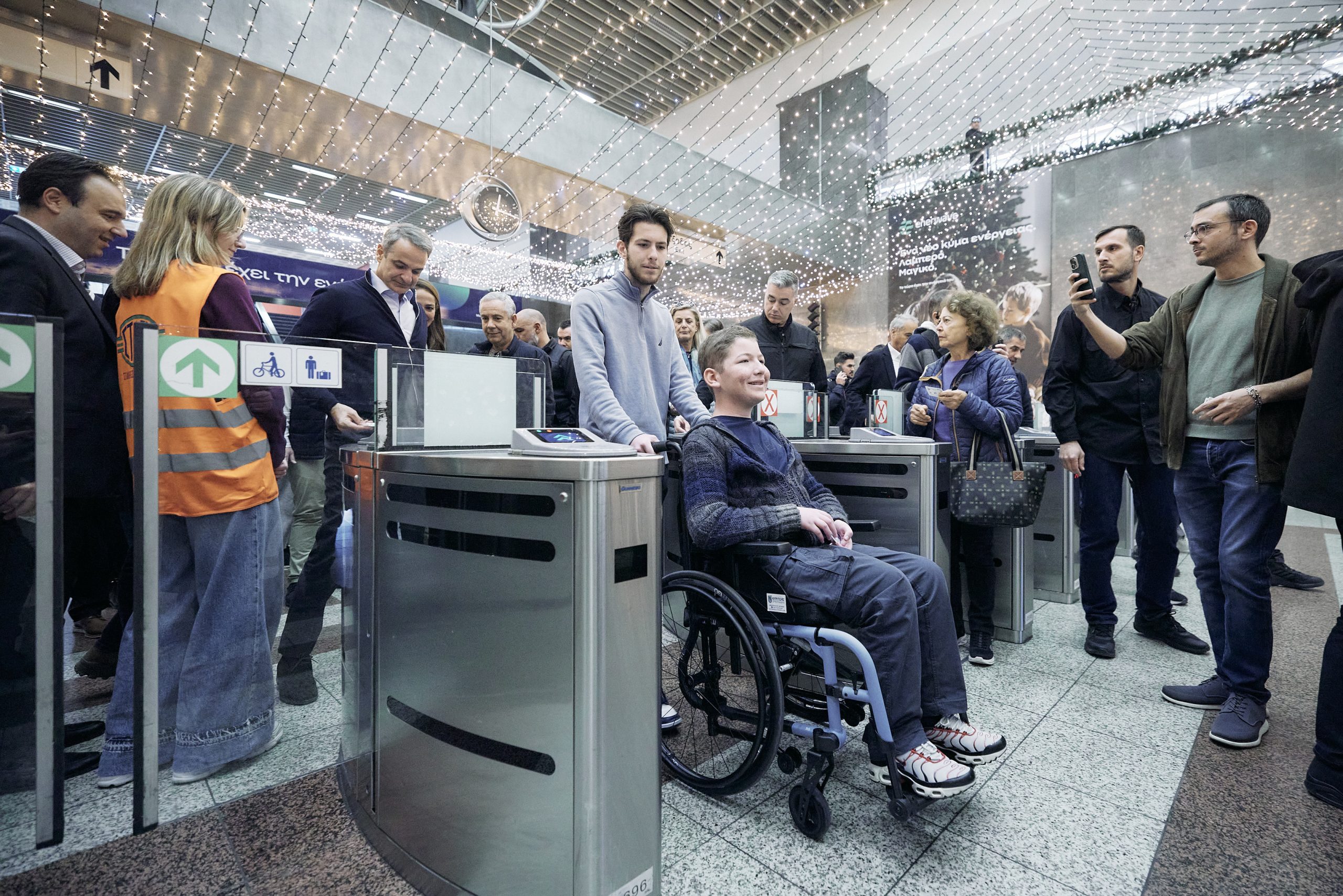 Ο Πρωθυπουργός, συνοδευόμενος από την Υπουργό Κοινωνικής Συνοχής και Οικογένειας Δόμνα Μιχαηλίδου, τον Υπουργό Ψηφιακής Διακυβέρνησης Δημήτρη Παπαστεργίου και τον Αναπληρωτή Υπουργό Υποδομών και Μεταφορών Κωνσταντίνο Κυρανάκη, είχε την ευκαιρία να δει τις άρτιες υποδομές προσβασιμότητας που διαθέτει το Μετρό και επιβιβάστηκε σε συρμό μαζί με τον Πέτρο και τον Παναγιώτη, ενώ είχε την ευκαιρία να συνομιλήσει με εργαζόμενους.
