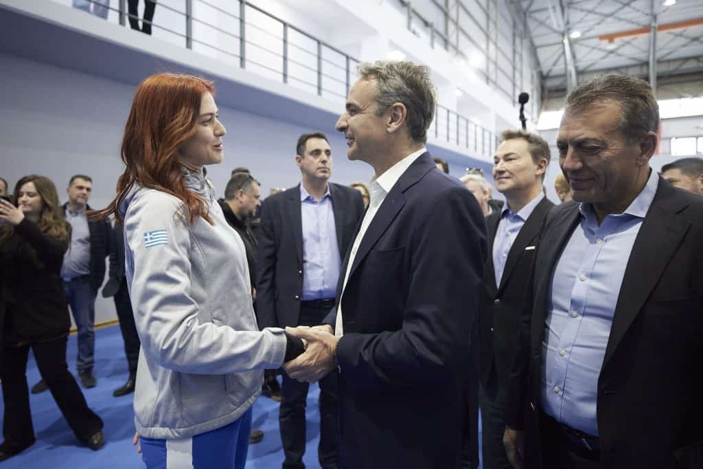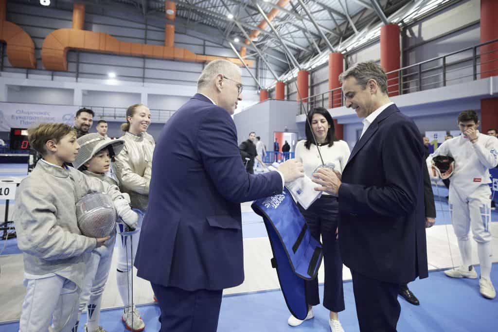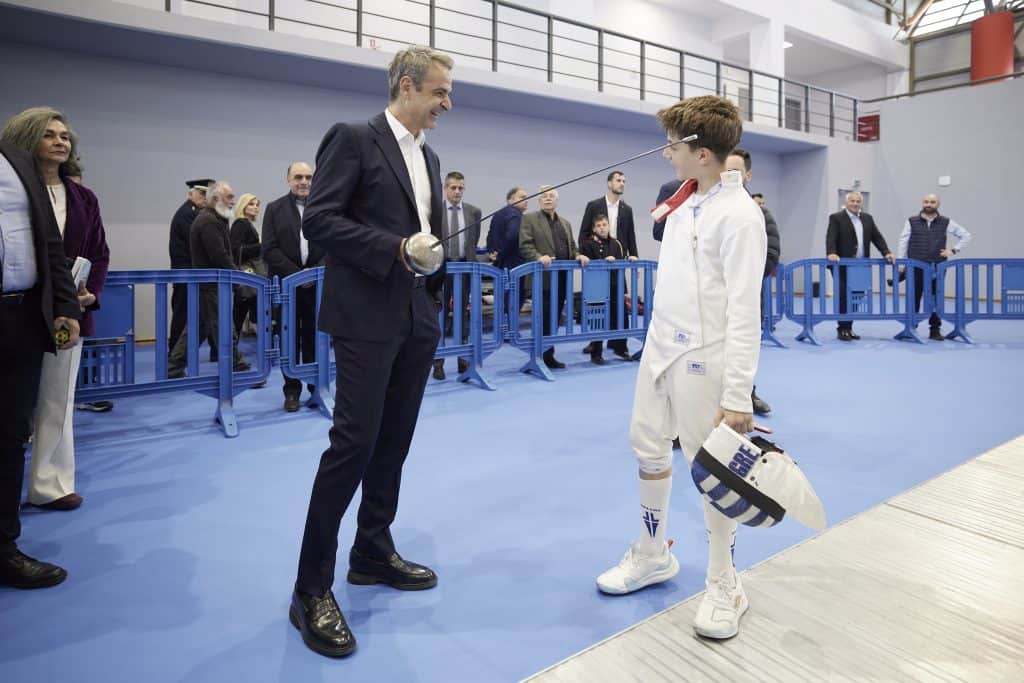 Σήμερα βρίσκομαι εδώ, σε αυτό το πολύ όμορφο πολυαθλητικό κέντρο στην Παιανία, με δύο εμβληματικές κλειστές εγκαταστάσεις. Η μία για να φιλοξενήσει τον κλειστό στίβο, αλλά και διάφορα αθλήματα σάλας, και εδώ, αυτό το κλειστό γήπεδο, στο οποίο βλέπετε από πίσω μας νέες και νέους που ασχολούνται με το πολύ όμορφο σπορ της ξιφασκίας να είναι πολύ χαρούμενοι, διότι επιτέλους απέκτησαν το μόνιμο “σπίτι” τους.