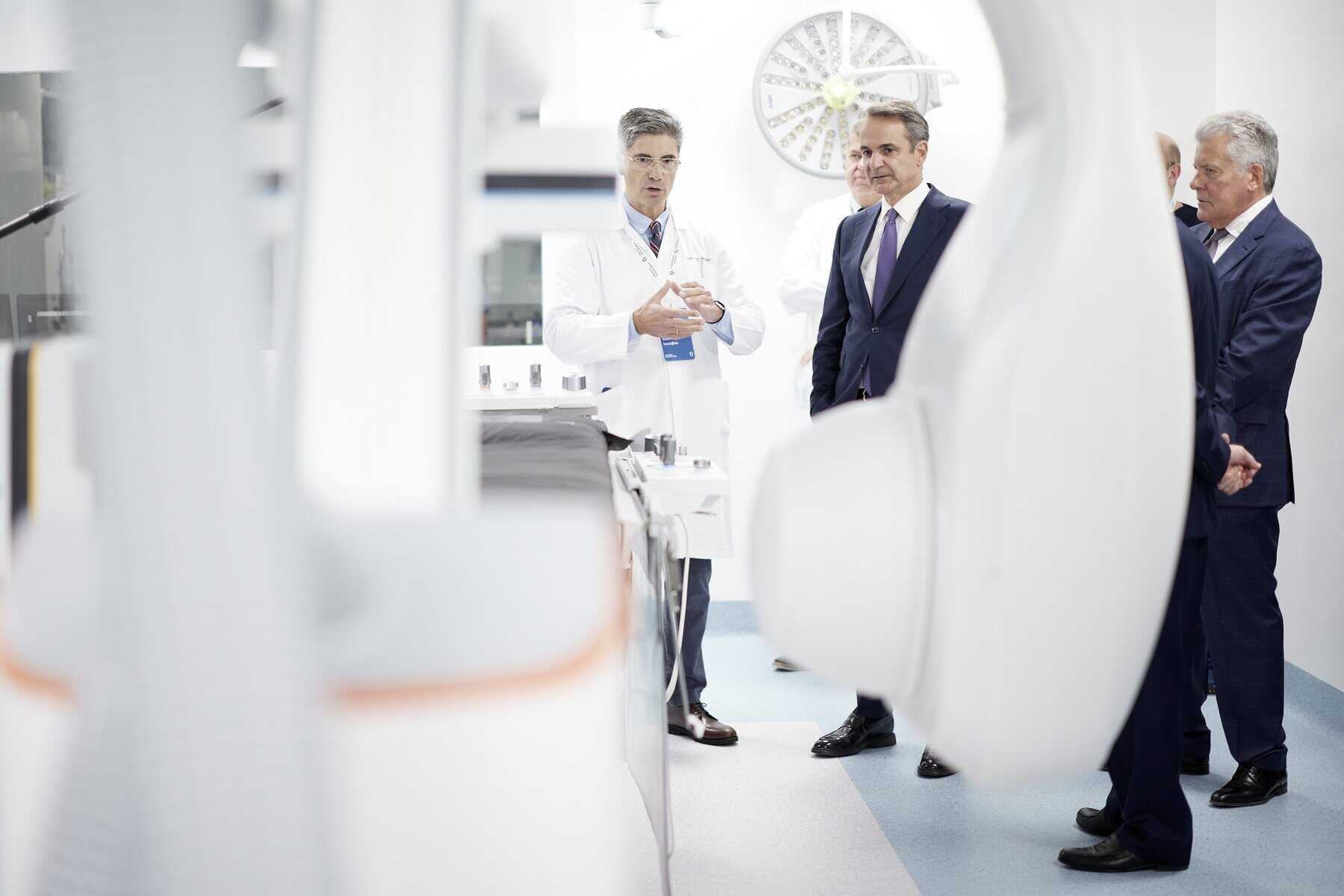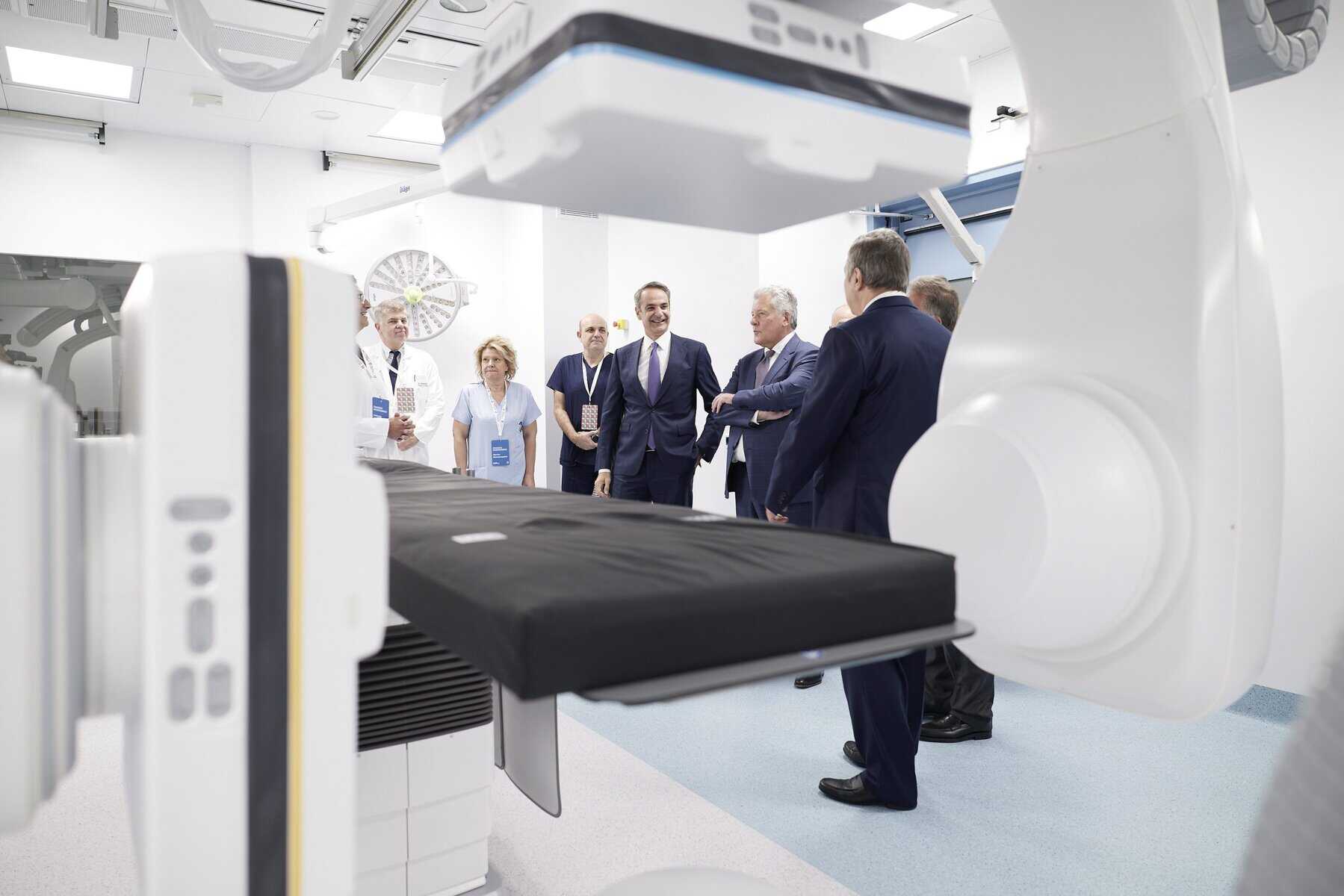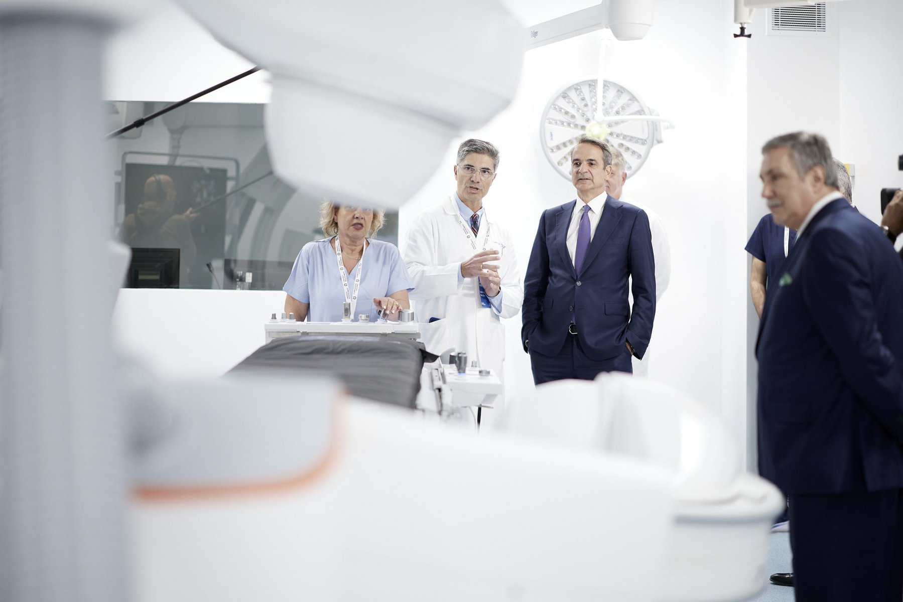 Ο Κυριάκος Μητσοτάκης είχε την ευκαιρία να ενημερωθεί για τις πολύ μεγάλες δυνατότητες σε απεικονιστικό και θεραπευτικό επίπεδο που παρέχει ο καινούργιος τεχνολογικός εξοπλισμός του Ωνασείου, από τους πλέον σύγχρονους στην Ευρώπη και διεθνώς, ο οποίος αξιοποιεί την τεχνητή νοημοσύνη και τη ρομποτική για τη σημαντική αναβάθμιση των παρεχόμενων υπηρεσιών στους ασθενείς και τη βελτίωση της ποιότητας ζωής τους.